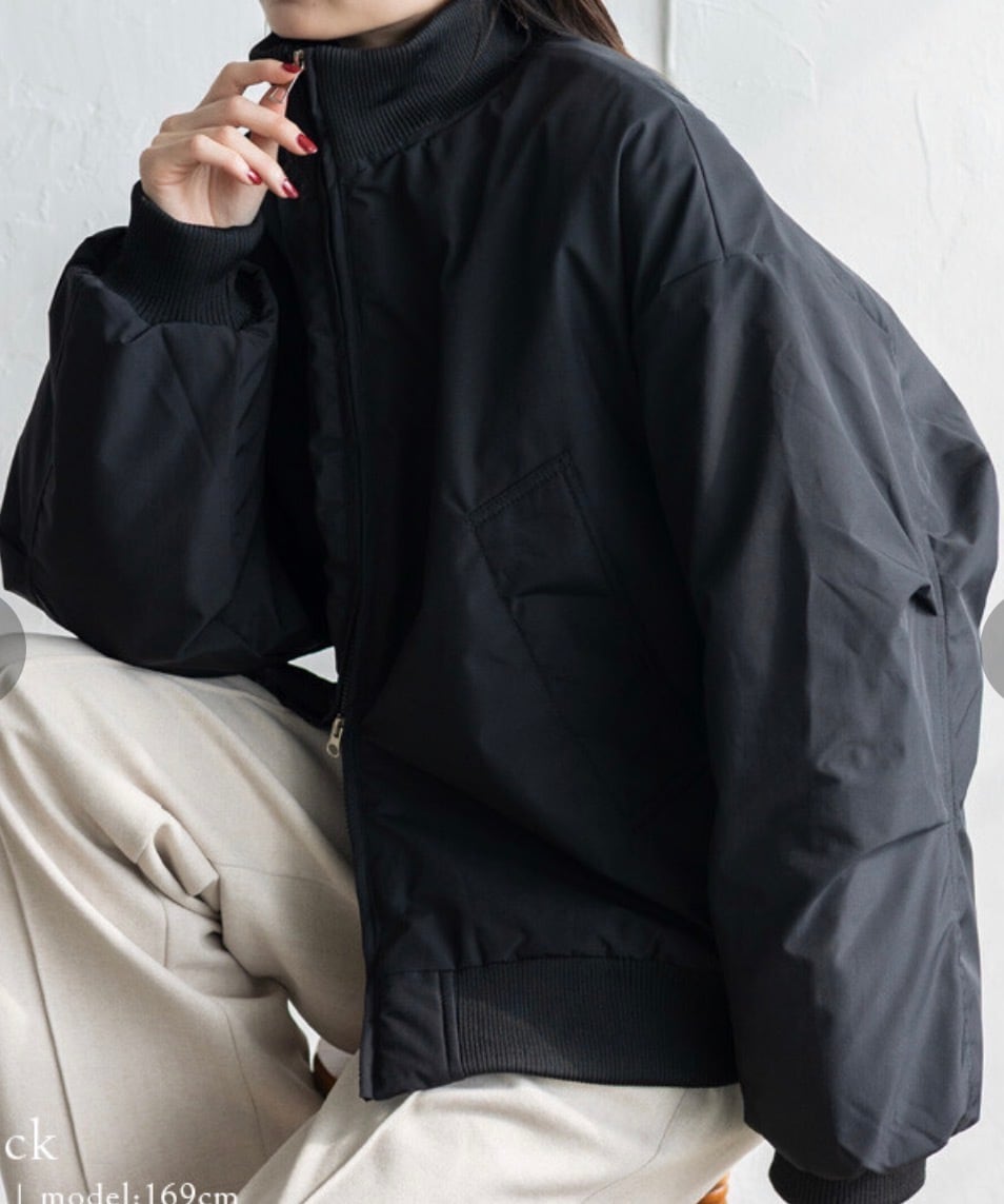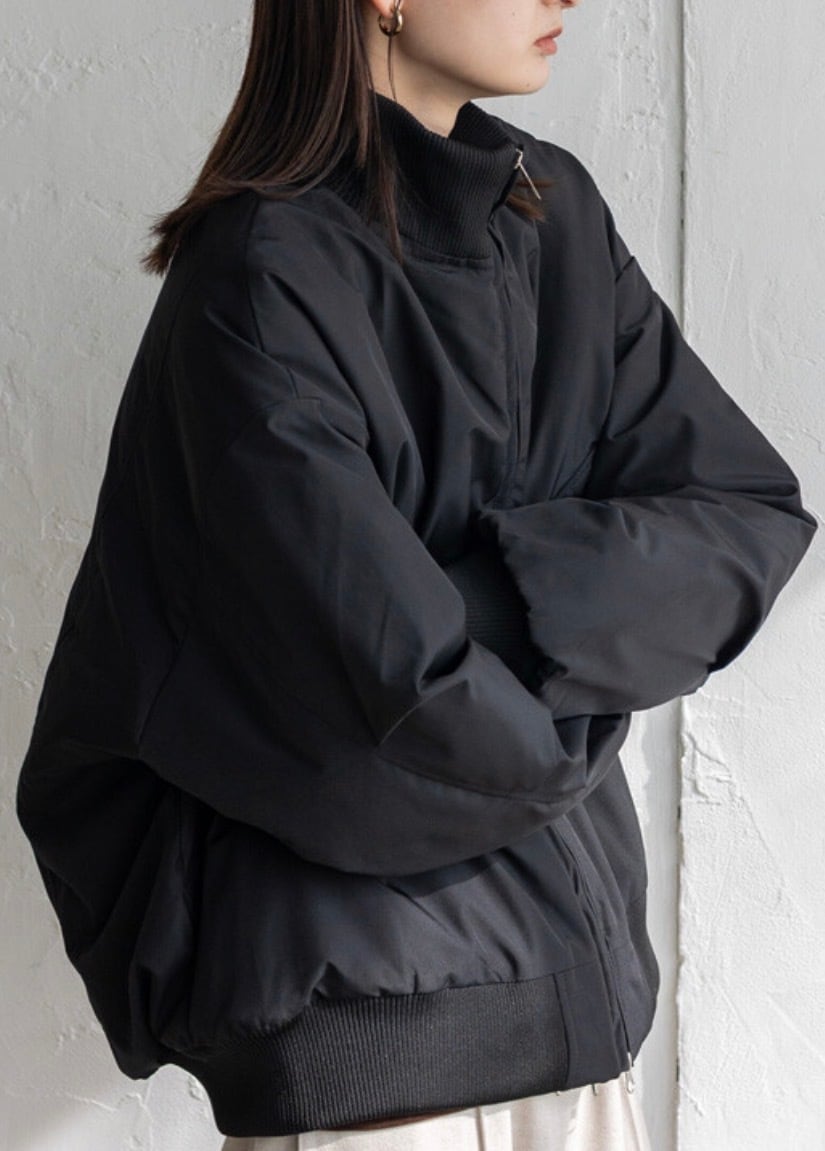 肌触りの良いしなやかな風合いの上品なマット生地を使用した中綿ブルゾン。