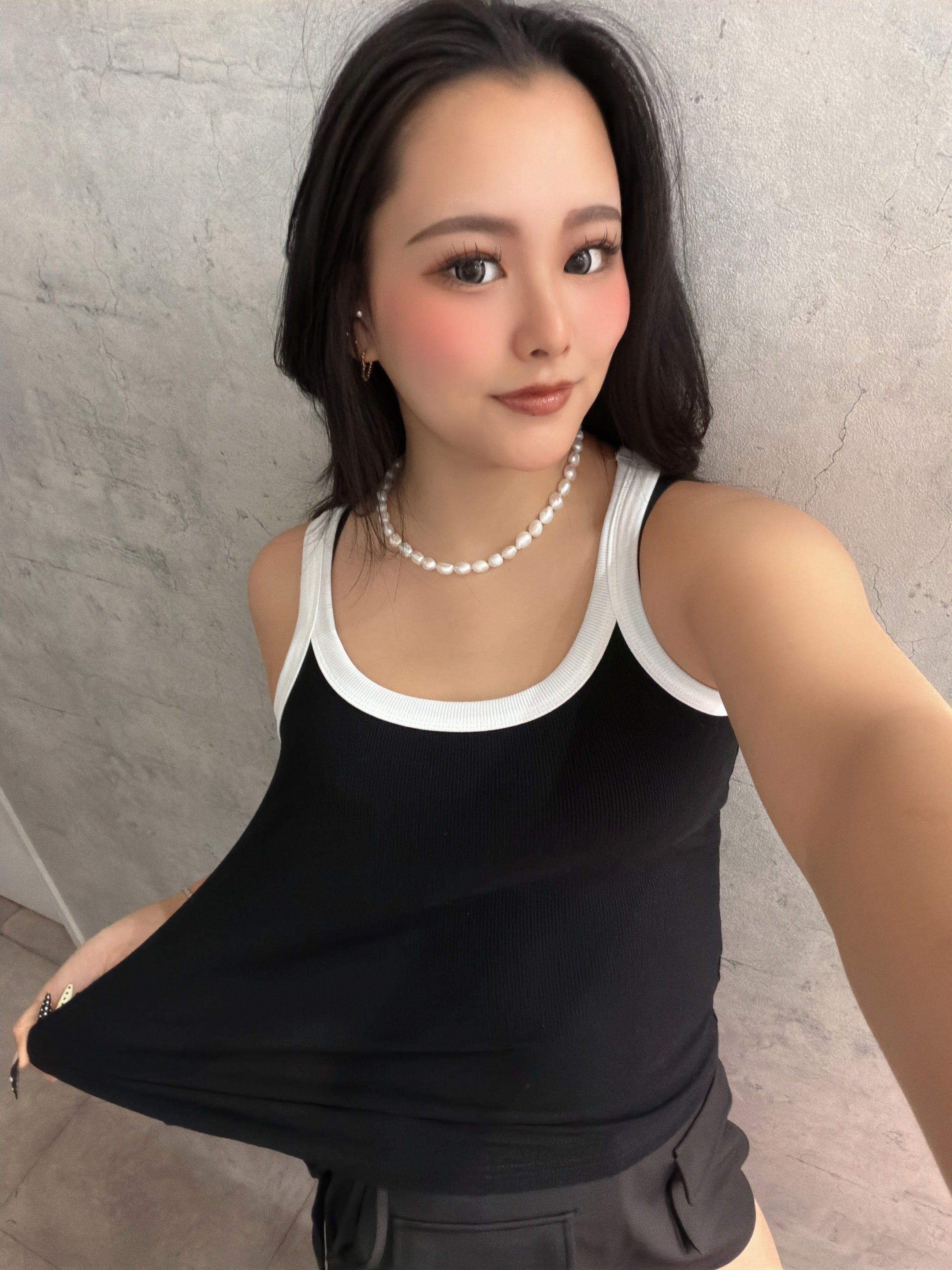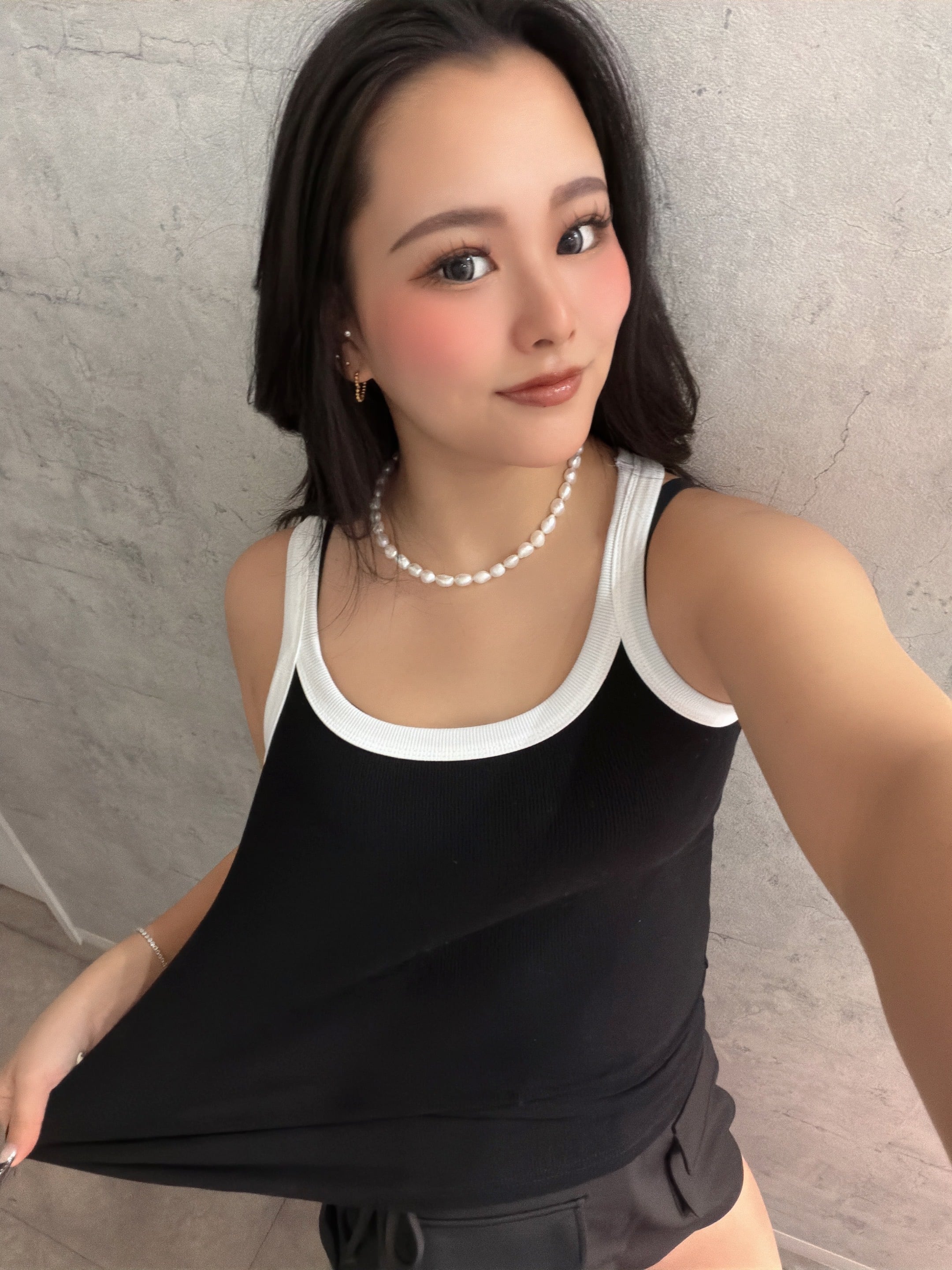 細めのダブルストラップが肩まわりを華奢に見せてくれて、