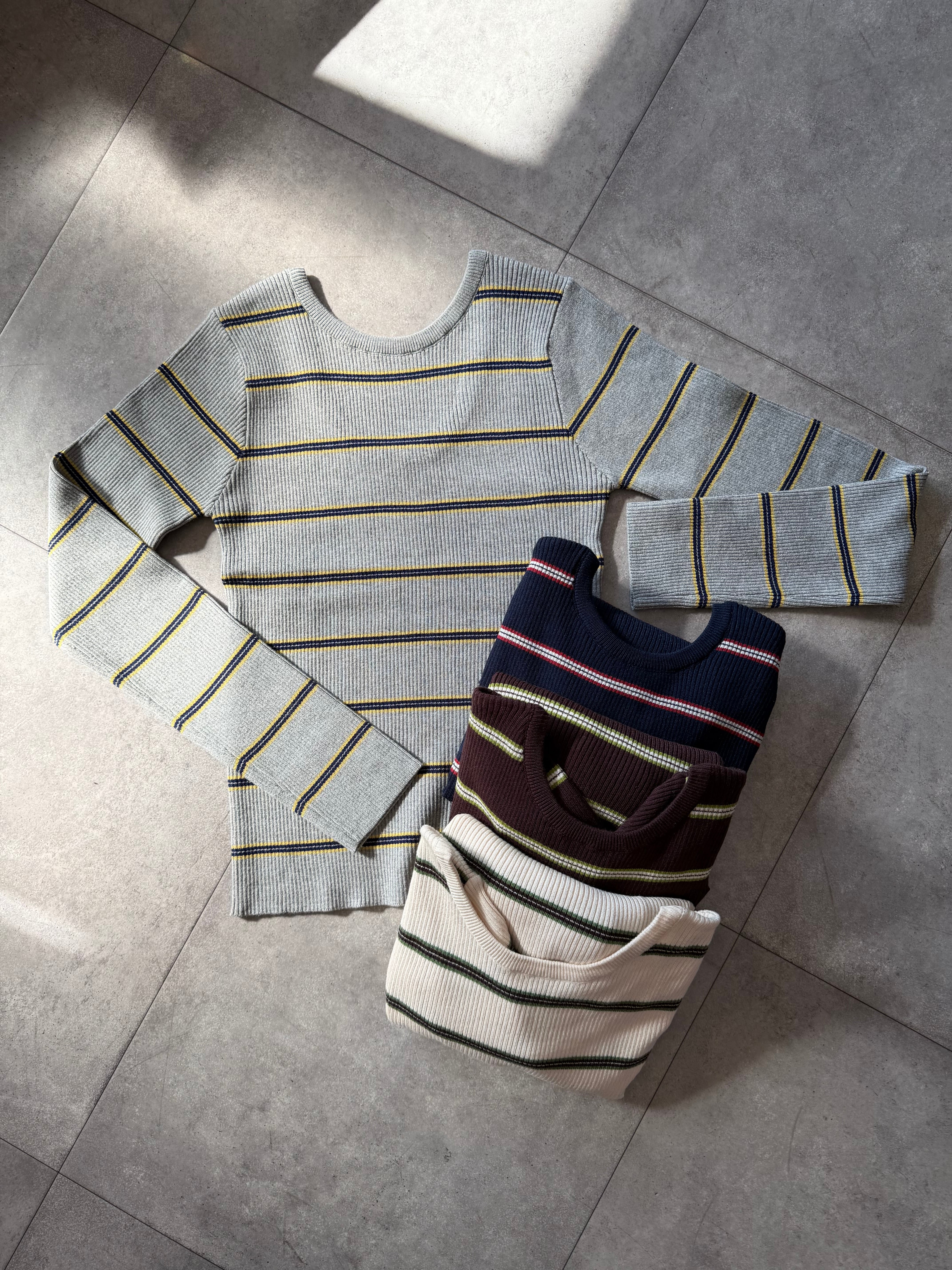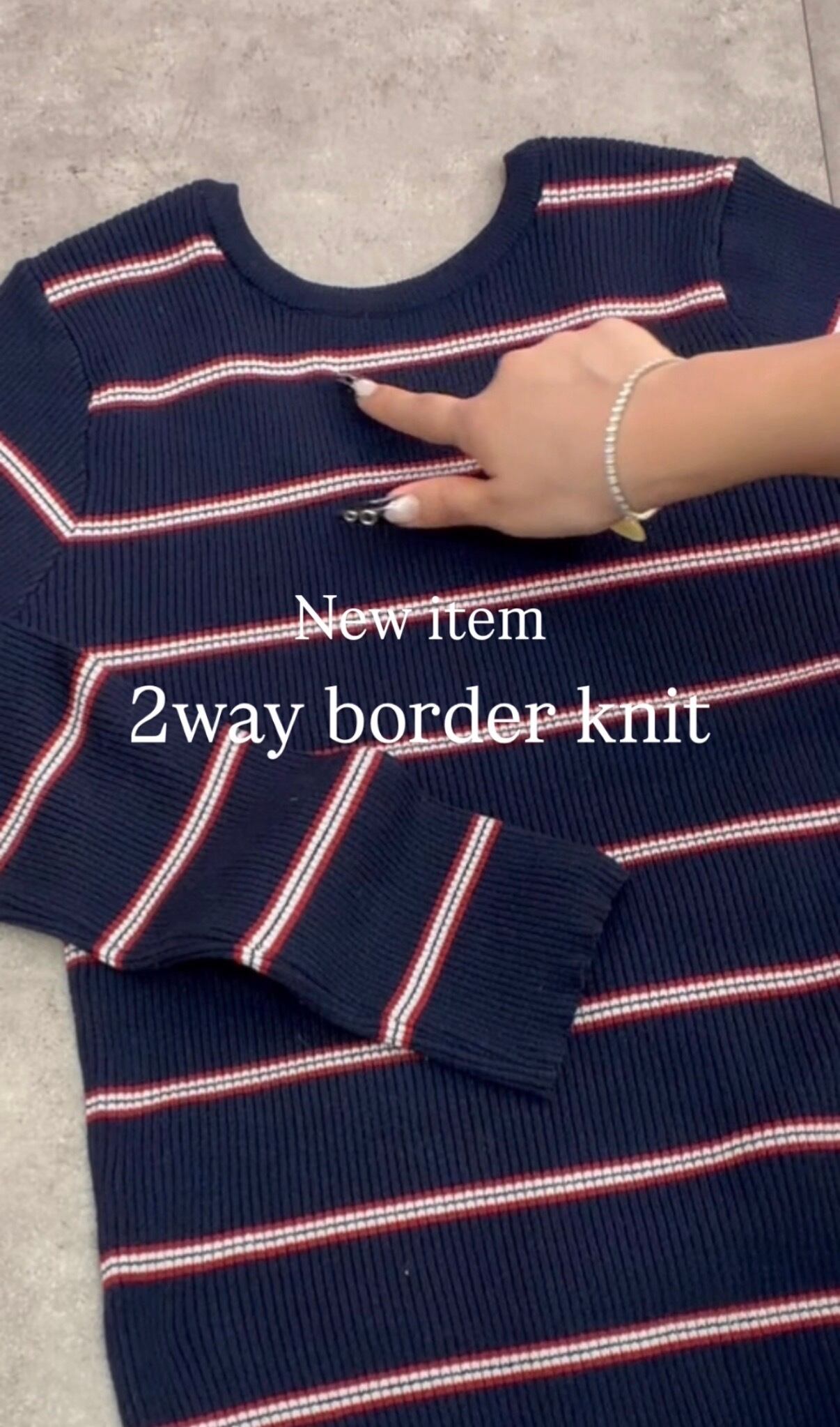 背中の抜け感が可愛いバックオープンデザインのボーダーニット。