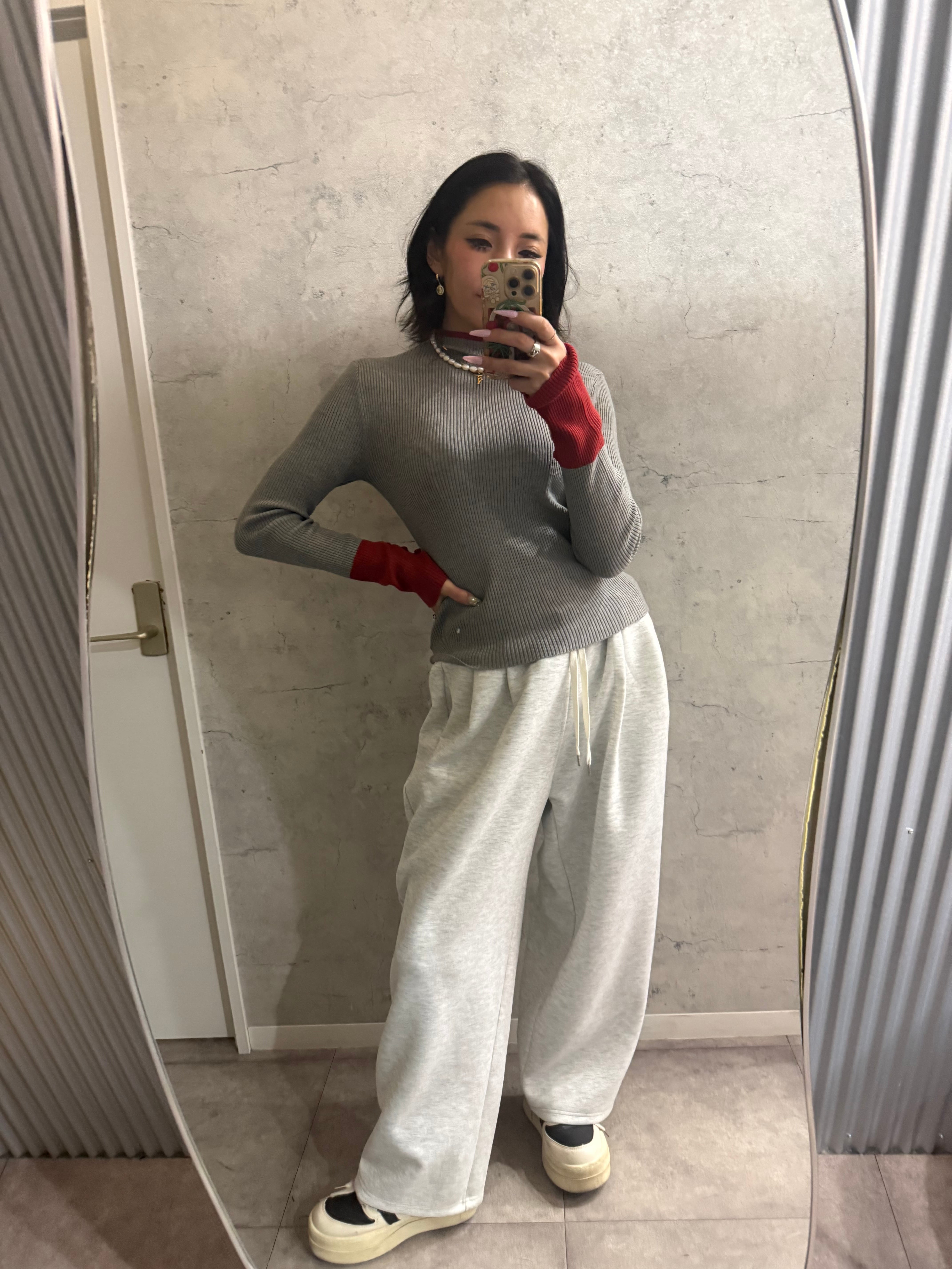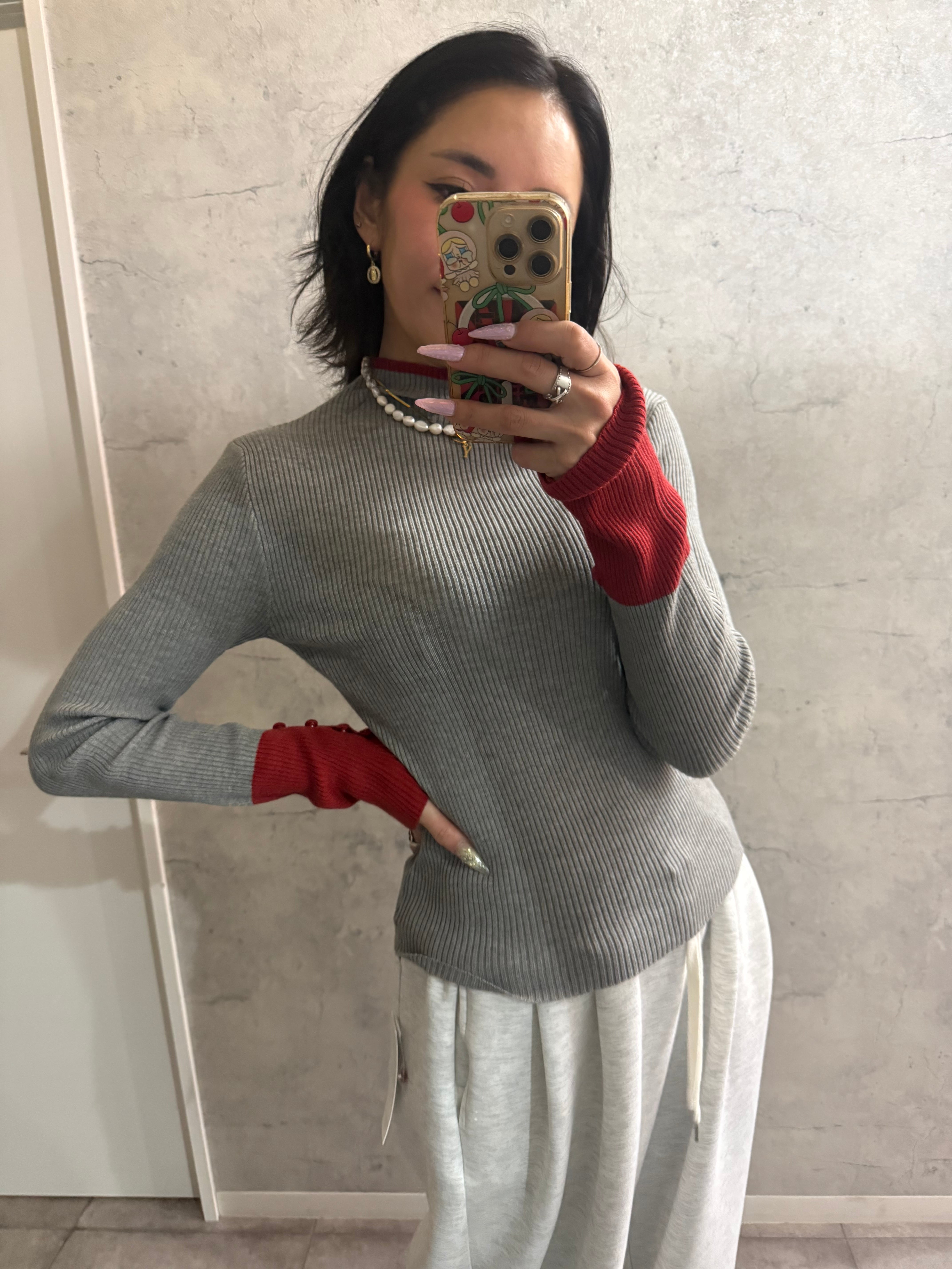 激伸び超細見え配色ハイネックニット