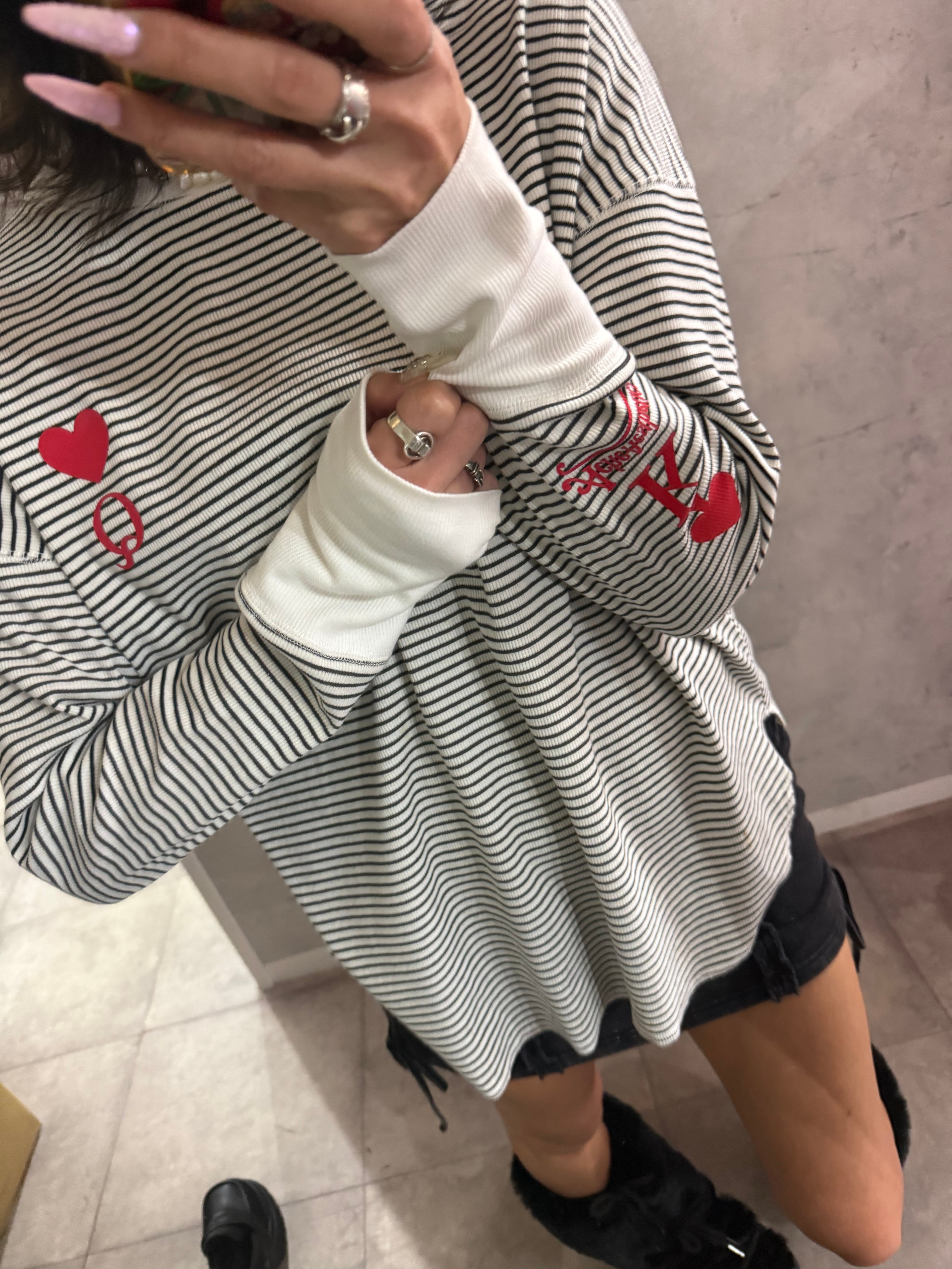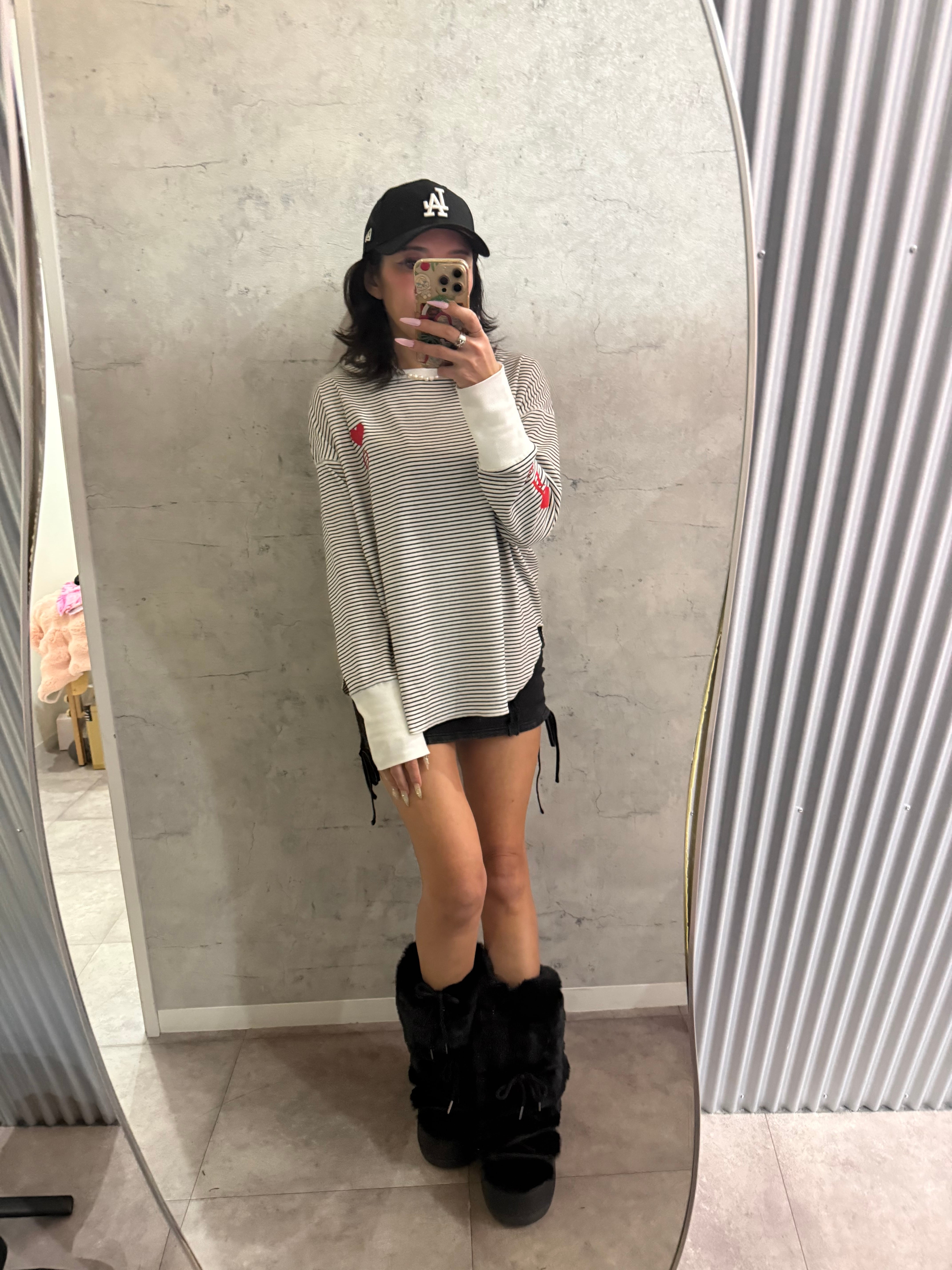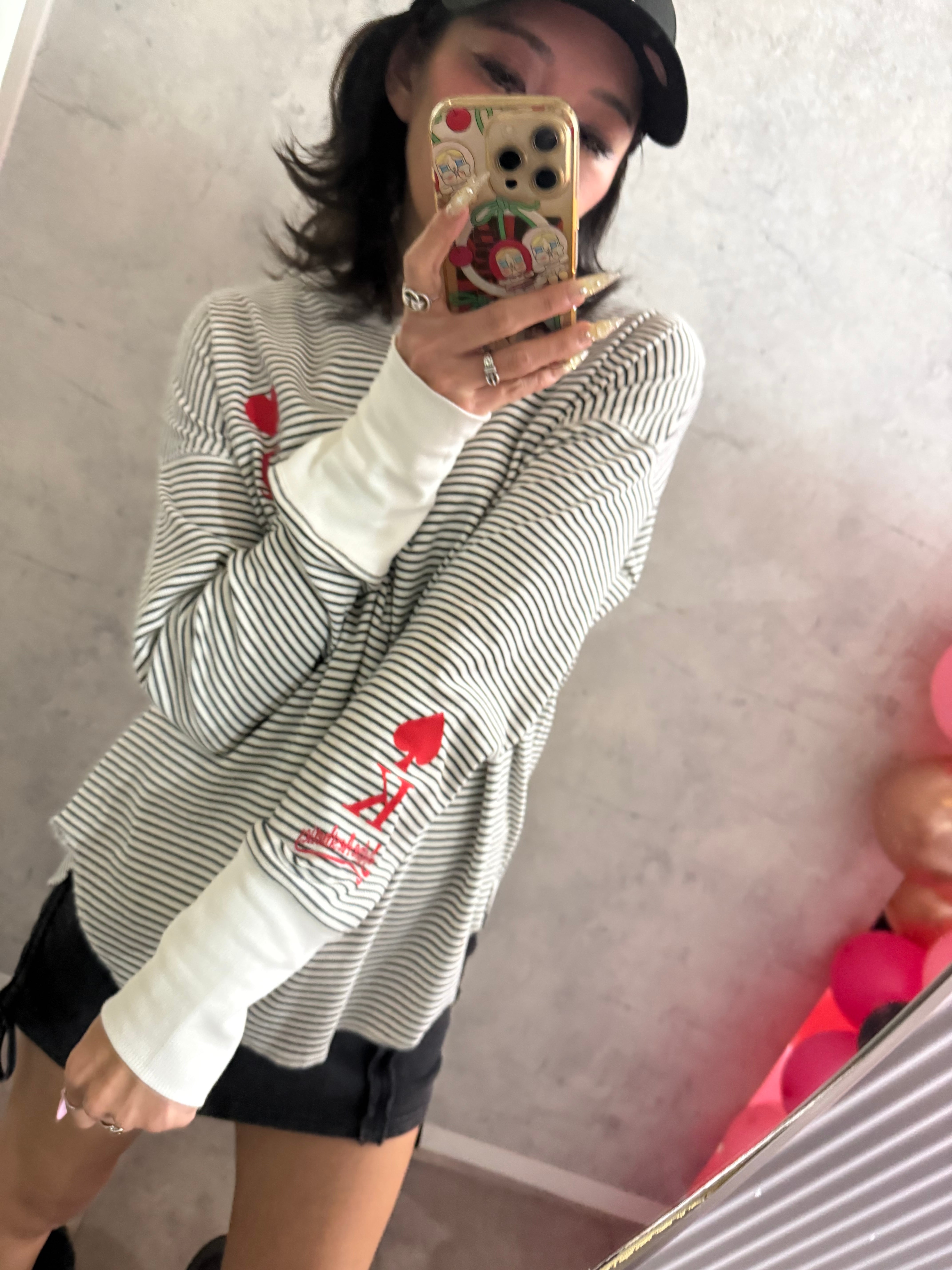 ゆったりめのシルエットで1枚で着ても可愛いし、アウターの中に仕込んでも映える万能アイテムデニム・スウェット・スカートなど