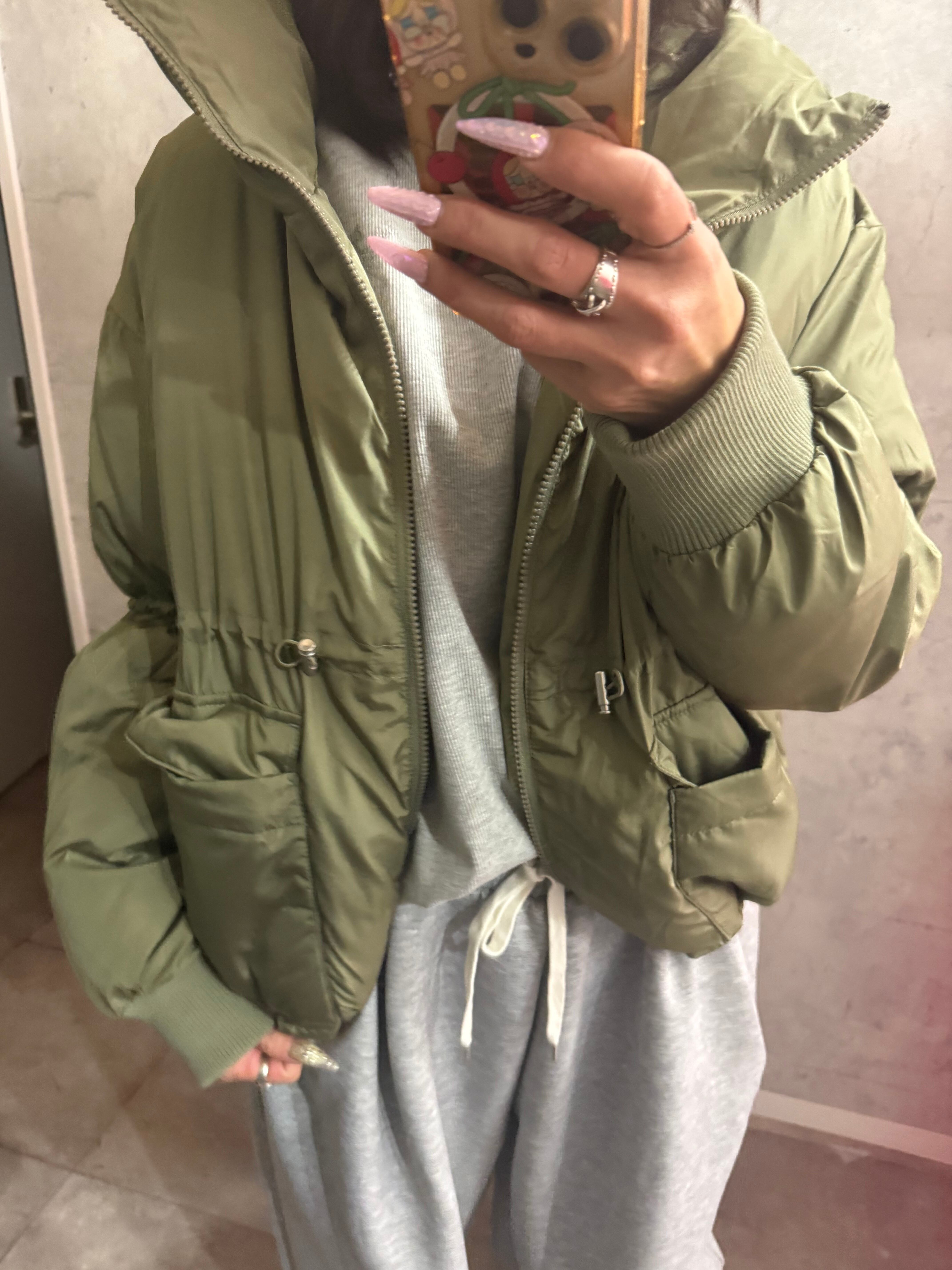 ふっくらとしたボリューム感が可愛い、ショート丈の中綿コート