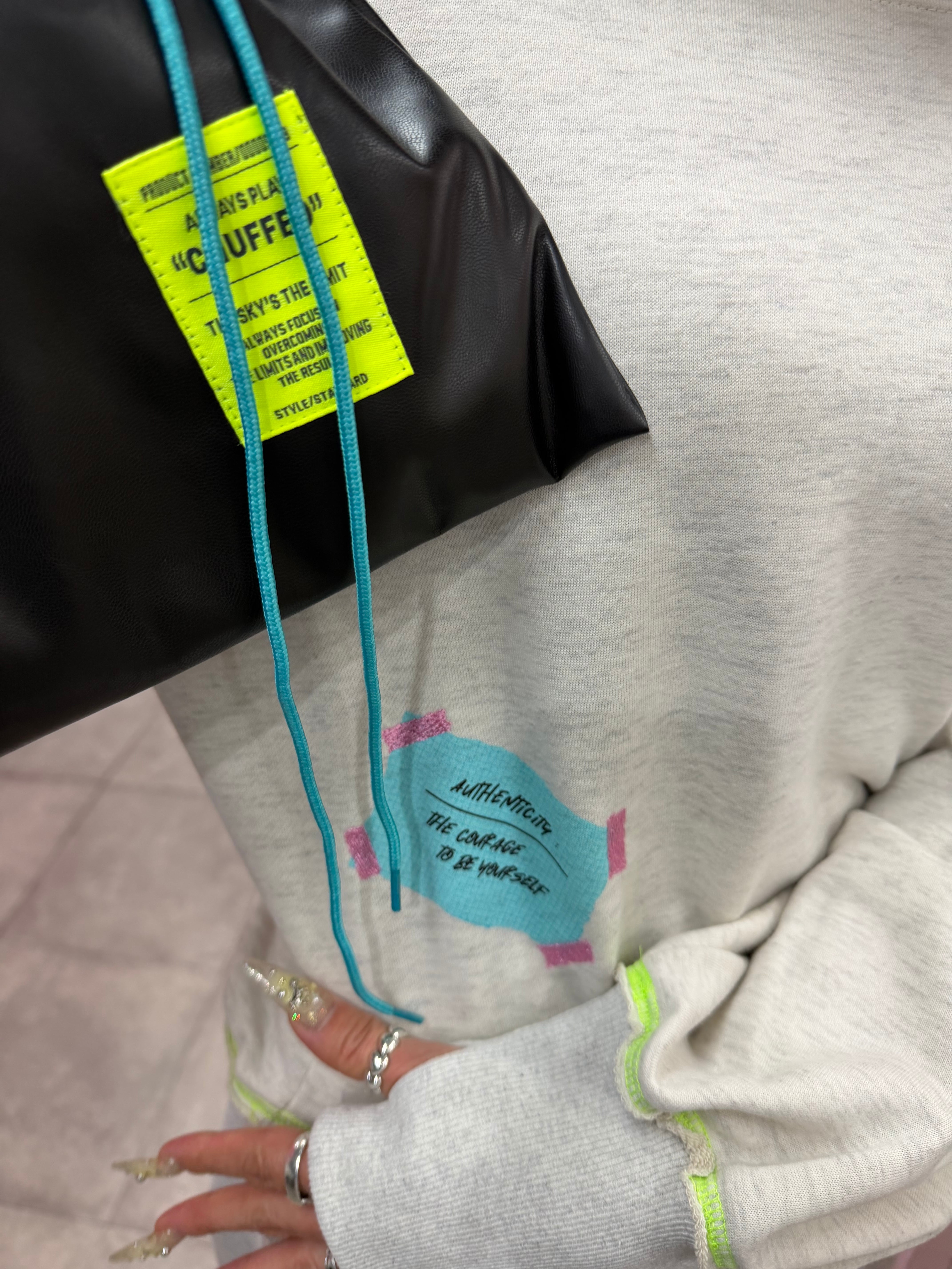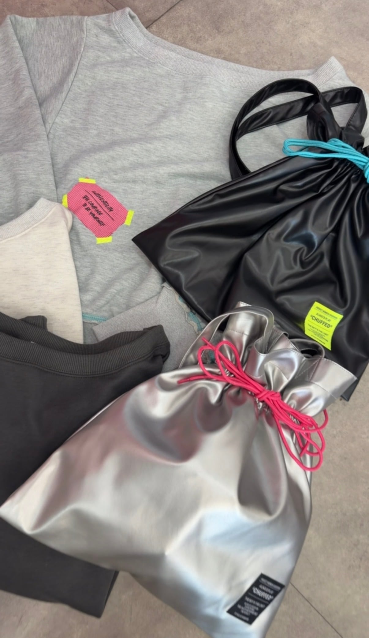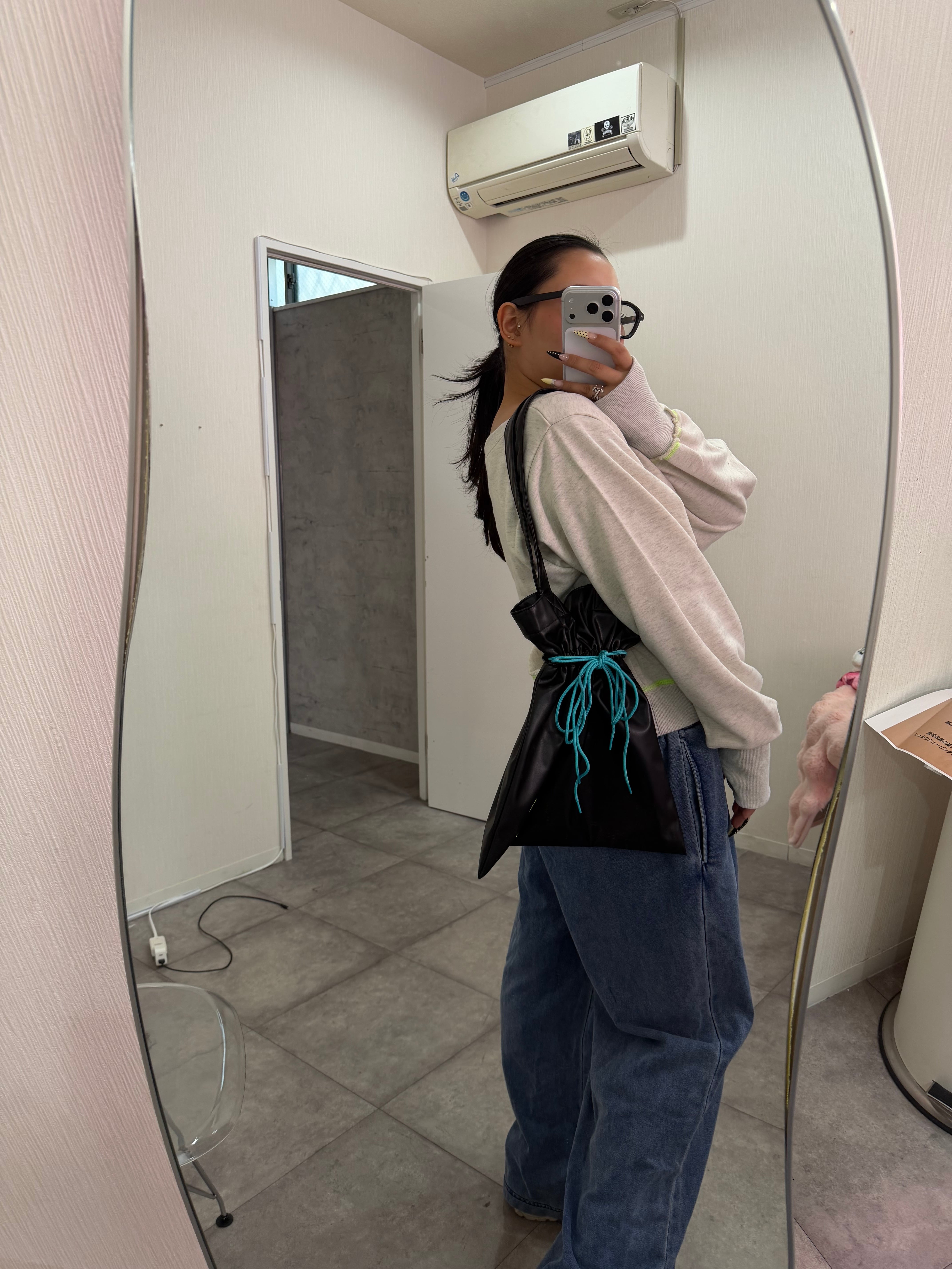2WAY!配色が◎ フェイクレザーの巾着トートバッグ