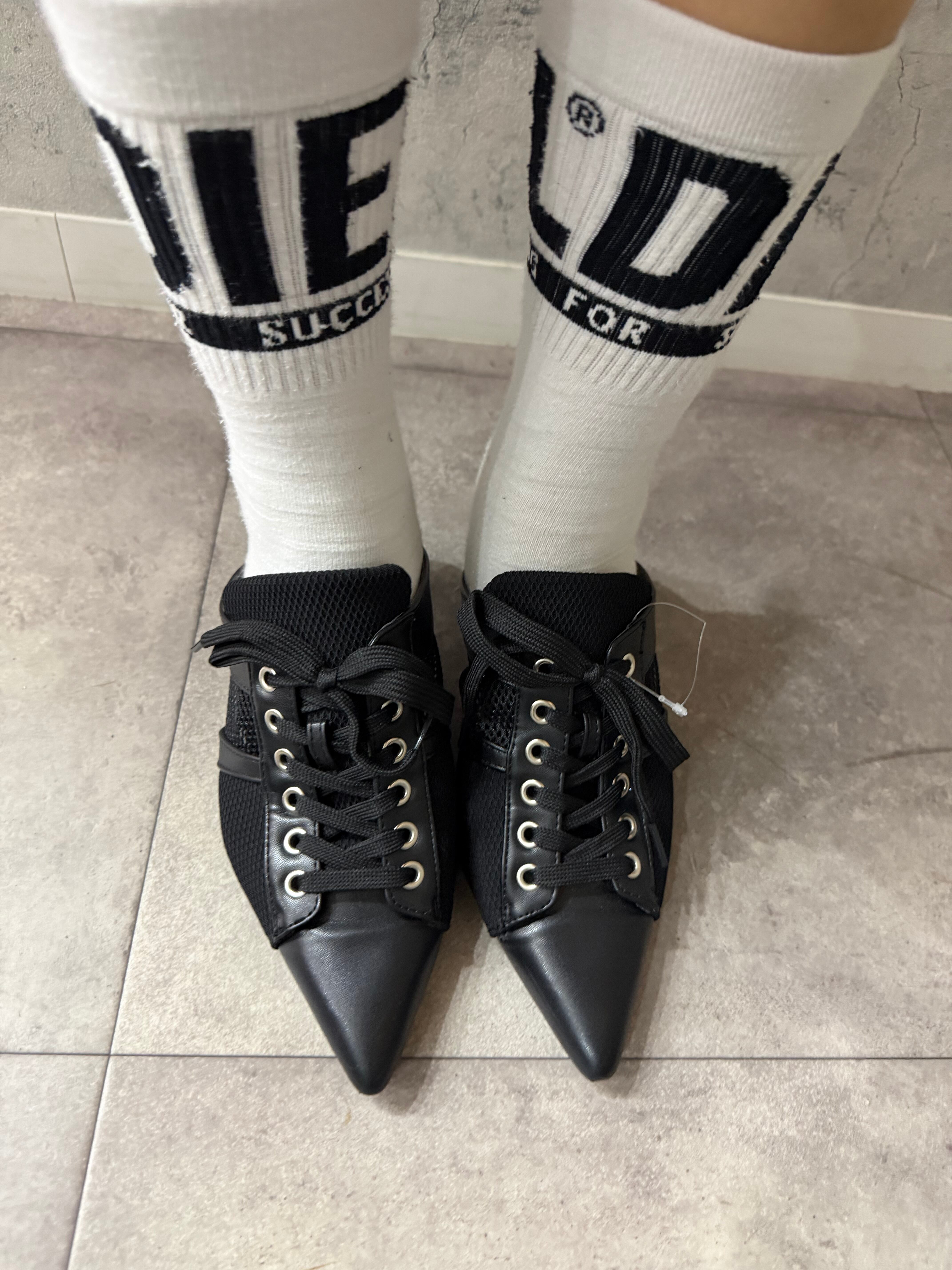 ポインテッドトゥですっきりした足元を演出しつつ、