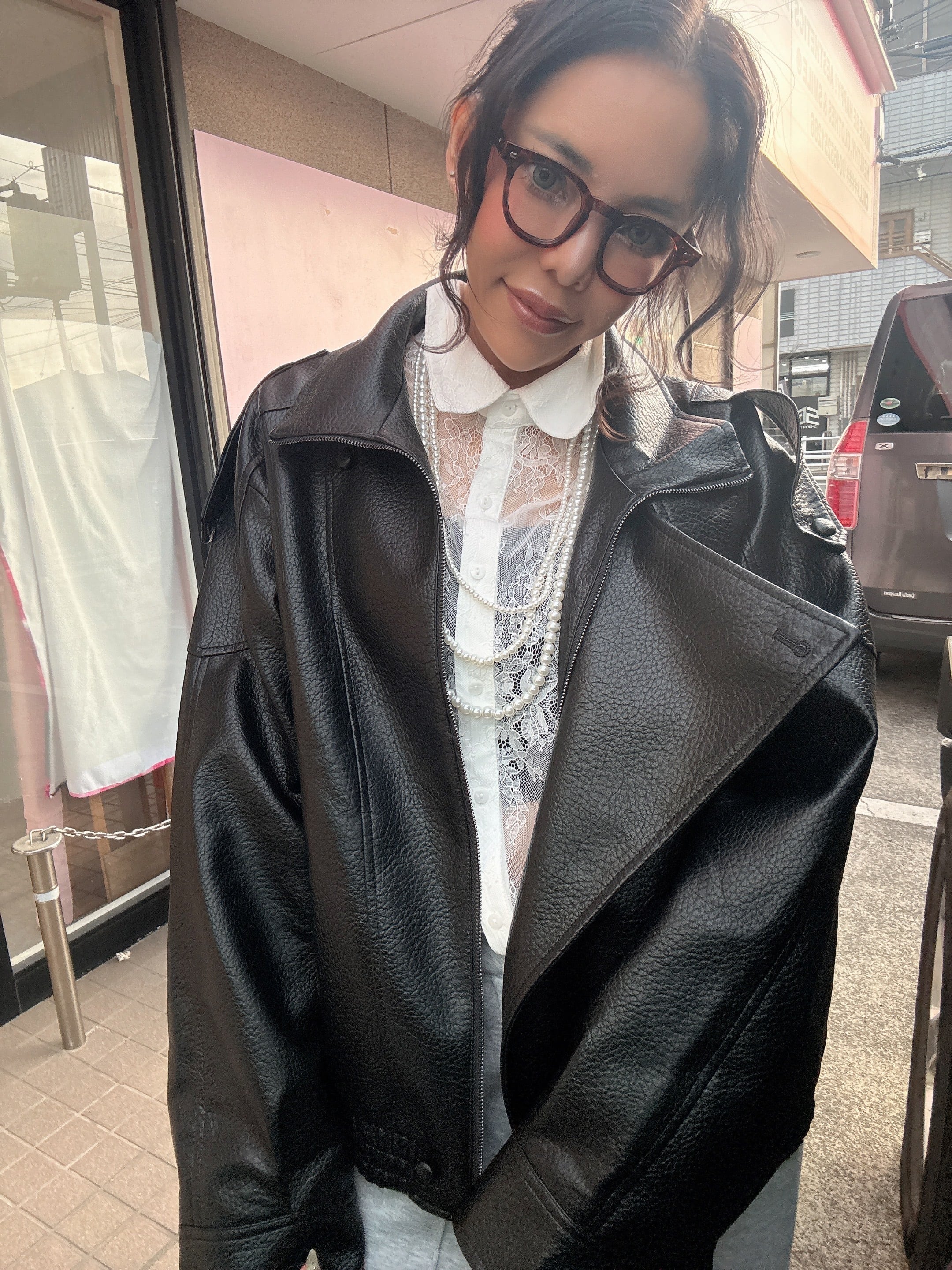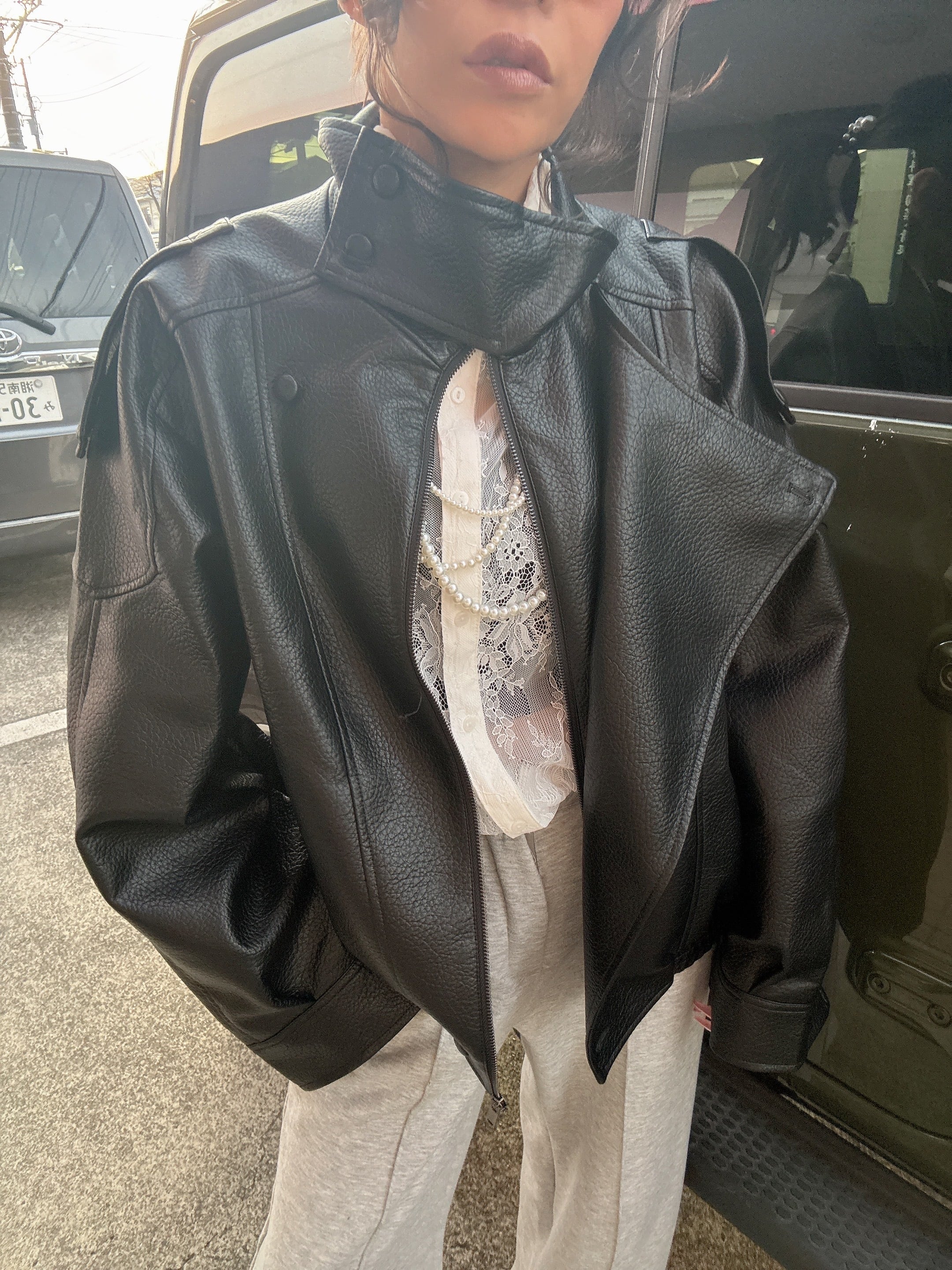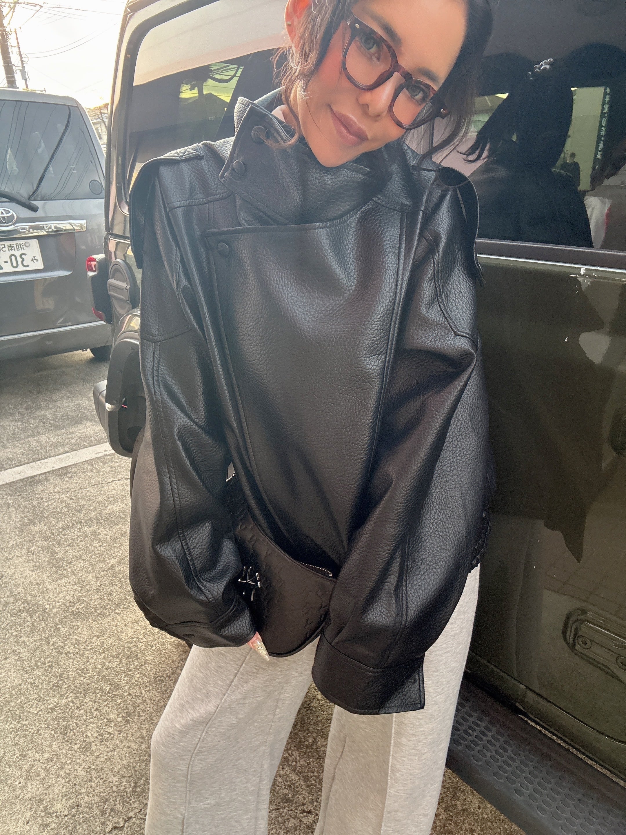 フェイクレザーの大人かっこいいジャケット!