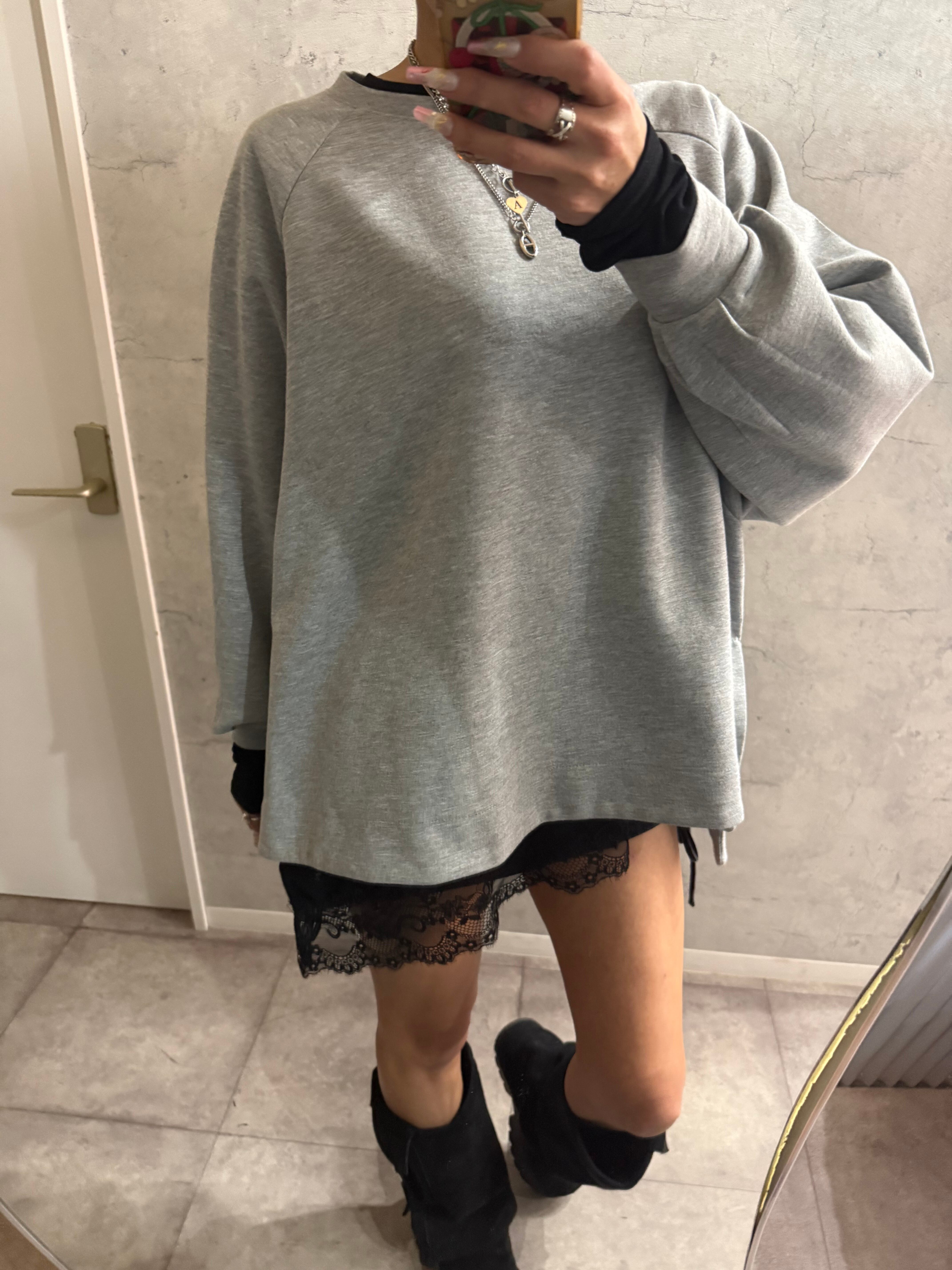 スムース天竺素材のレース付きアシメプルオーバーが登場