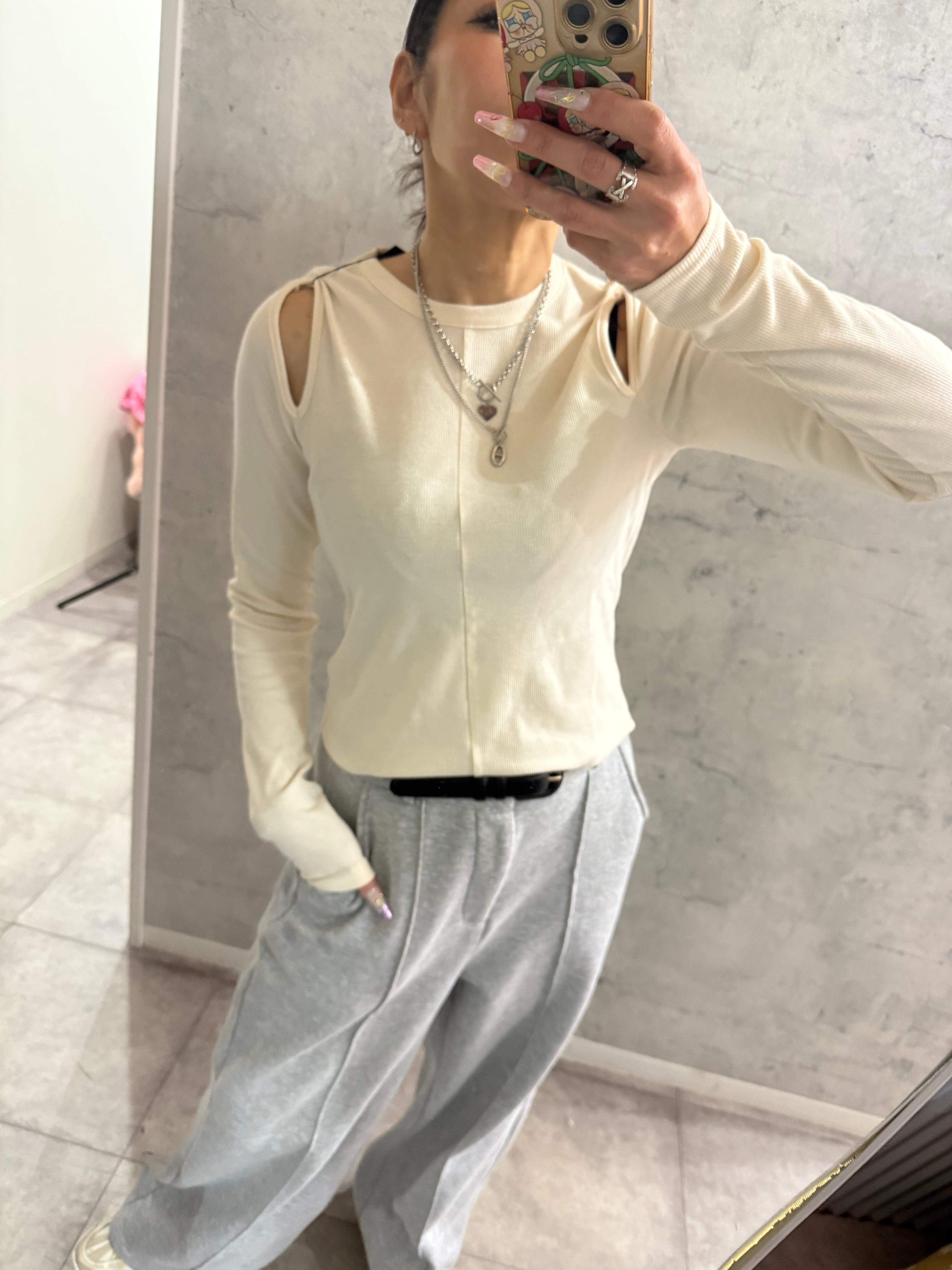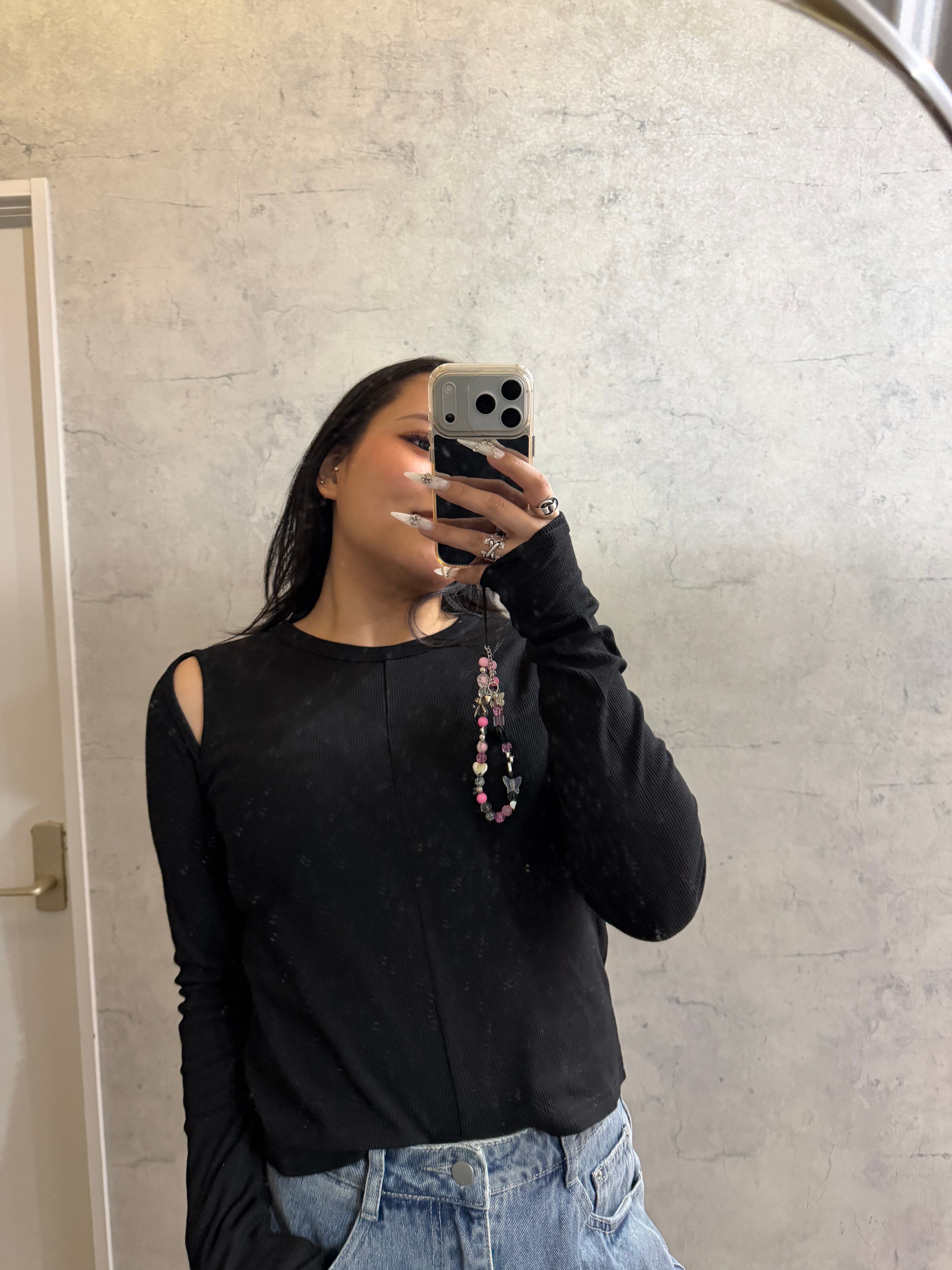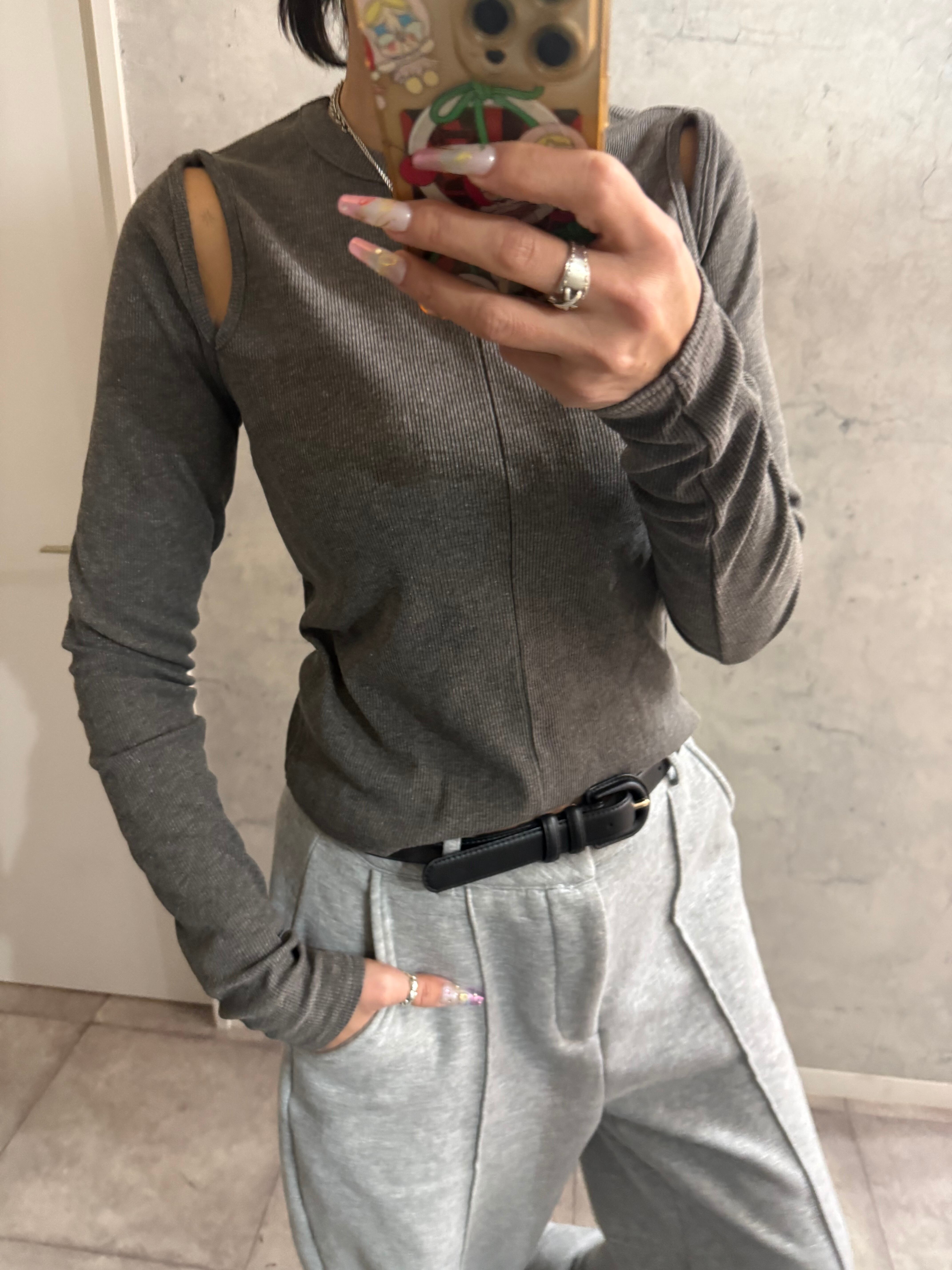 ブラックラスト1着痩せ!リブスリットカットソー
