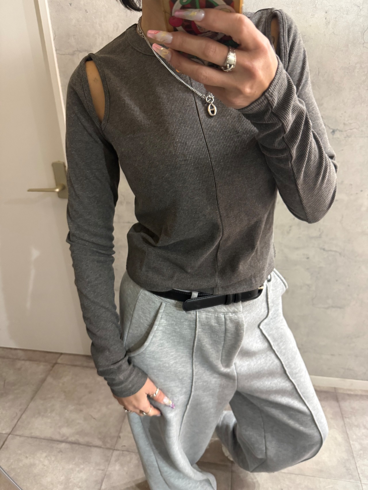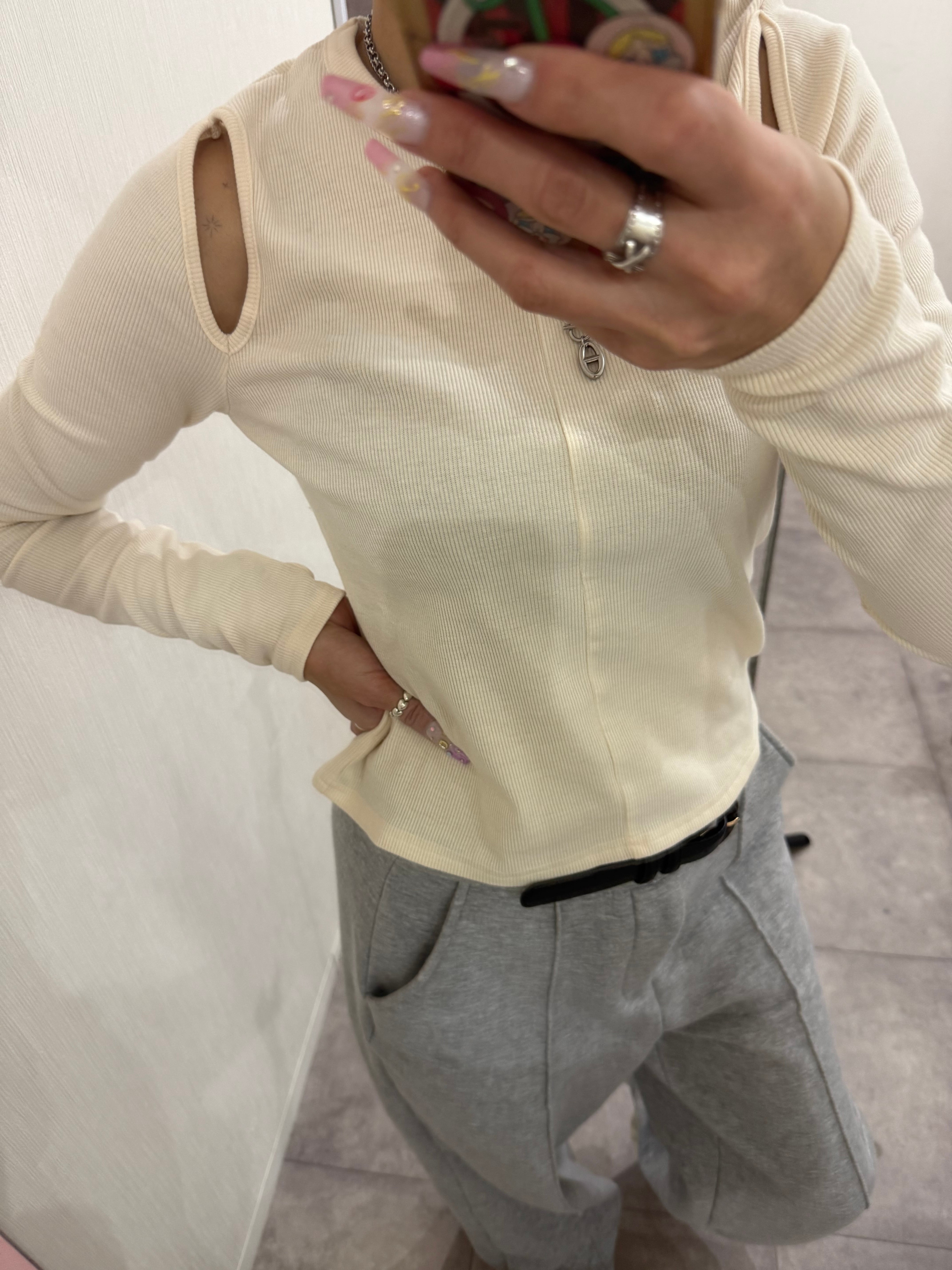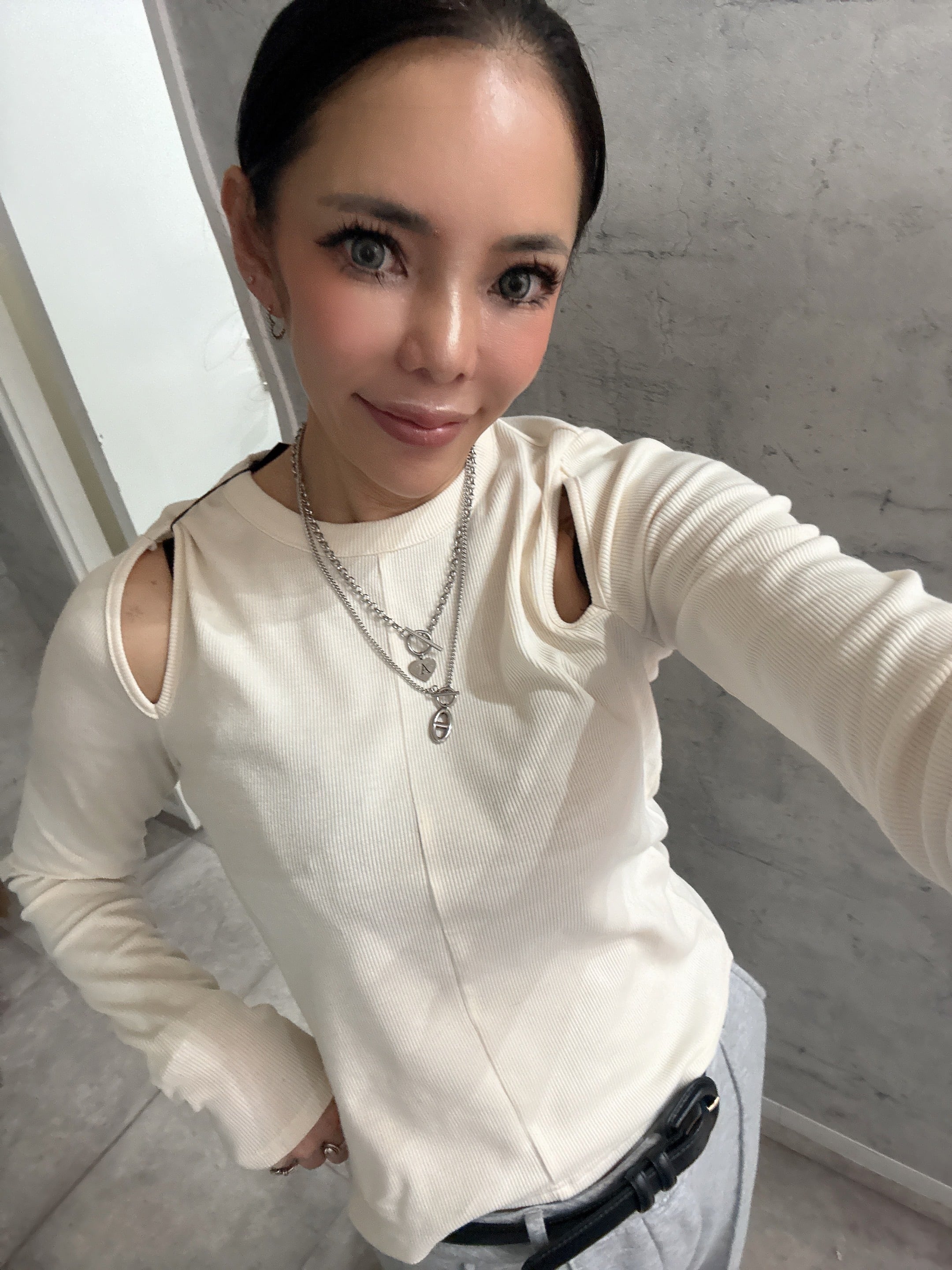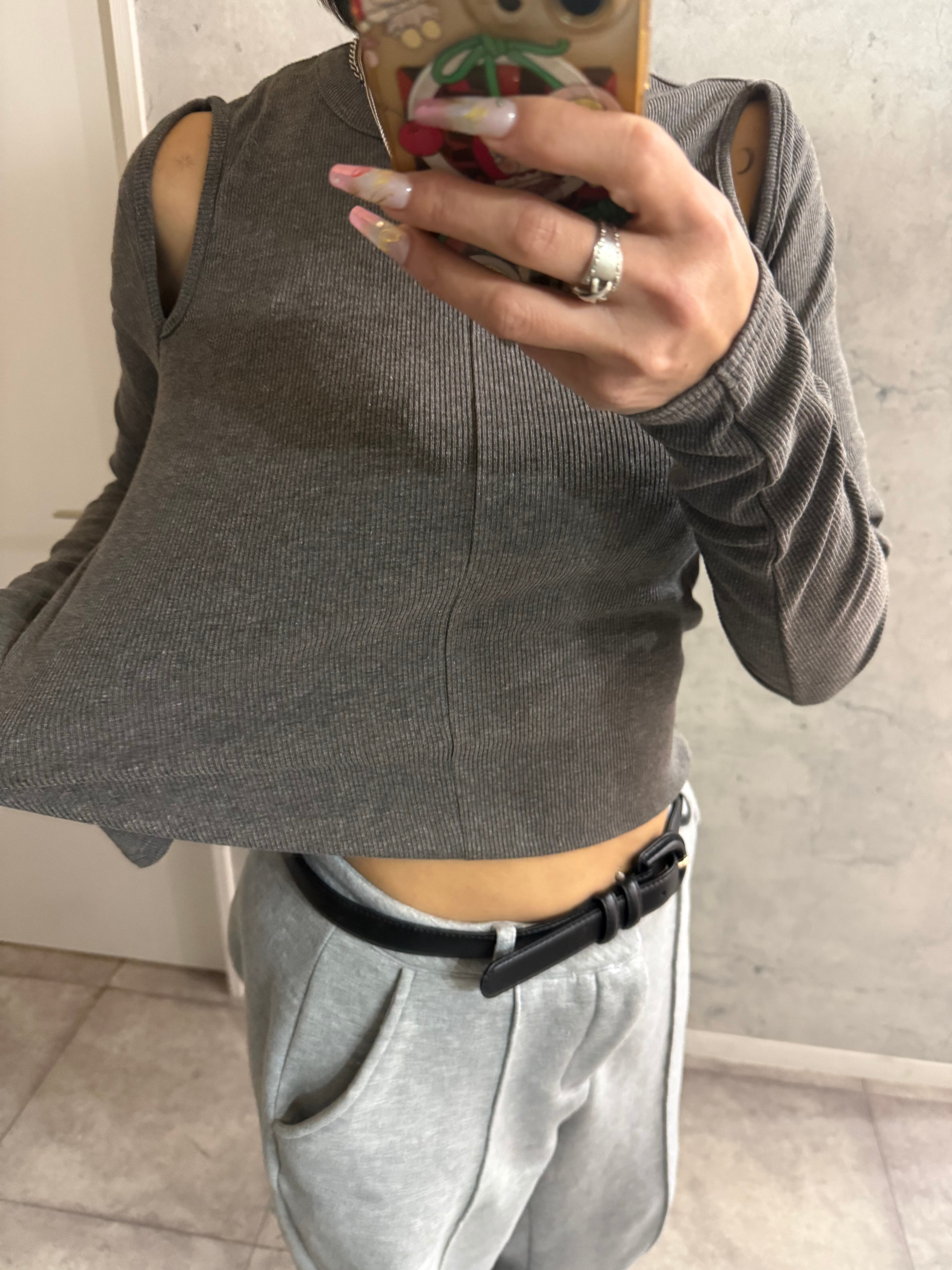 ブラックラスト1着痩せ!リブスリットカットソー