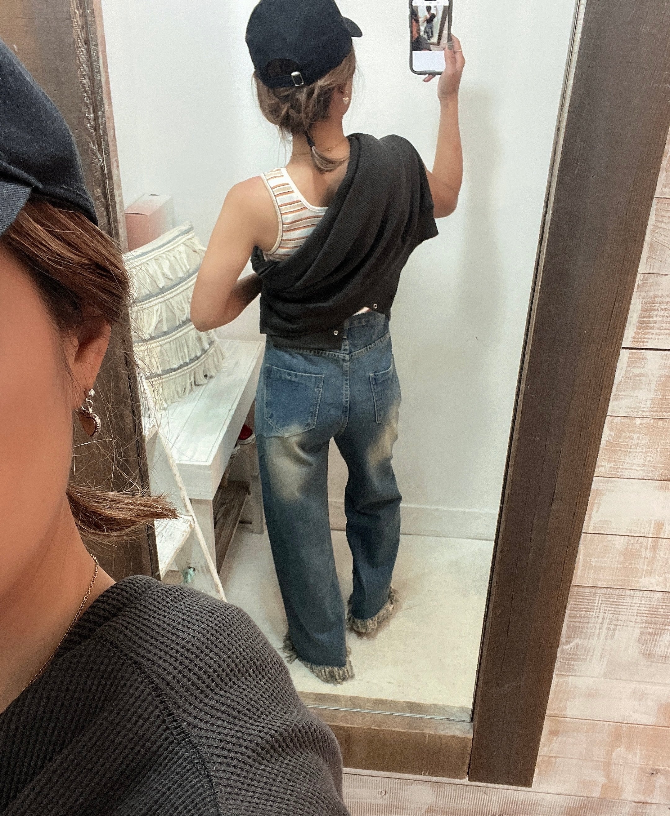 インポートフリンジワイドデニム