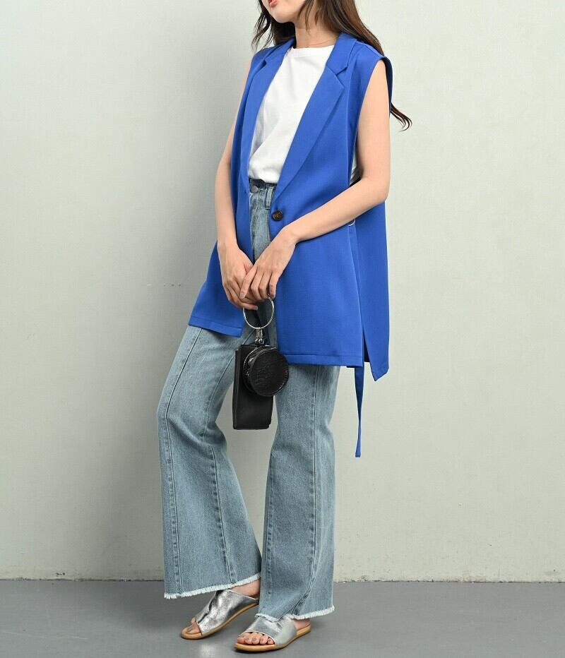 テーラージャケットの様なシルエットに仕上げ、サイドベルトが目を惹く1枚です。 綺麗めな雰囲気はそのままに、summerシーズンでも着用しやすく薄手のダブルクロス生地で仕上げました。
