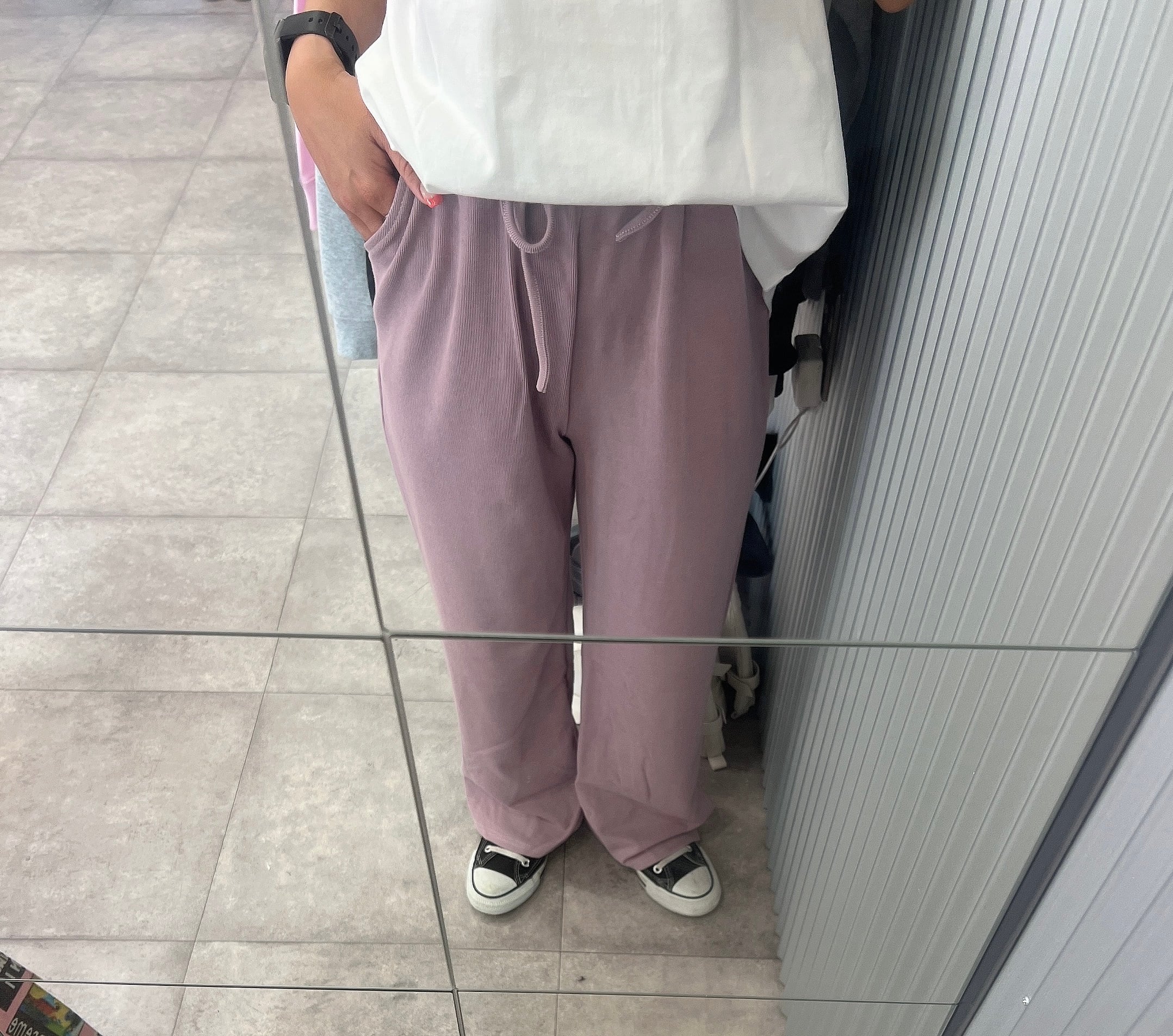 ●レッグラインを拾わないワイドシルエット。柔らかな生地と幅広フォルムのゆるさが心地よく、ノンストレスな着用感◎