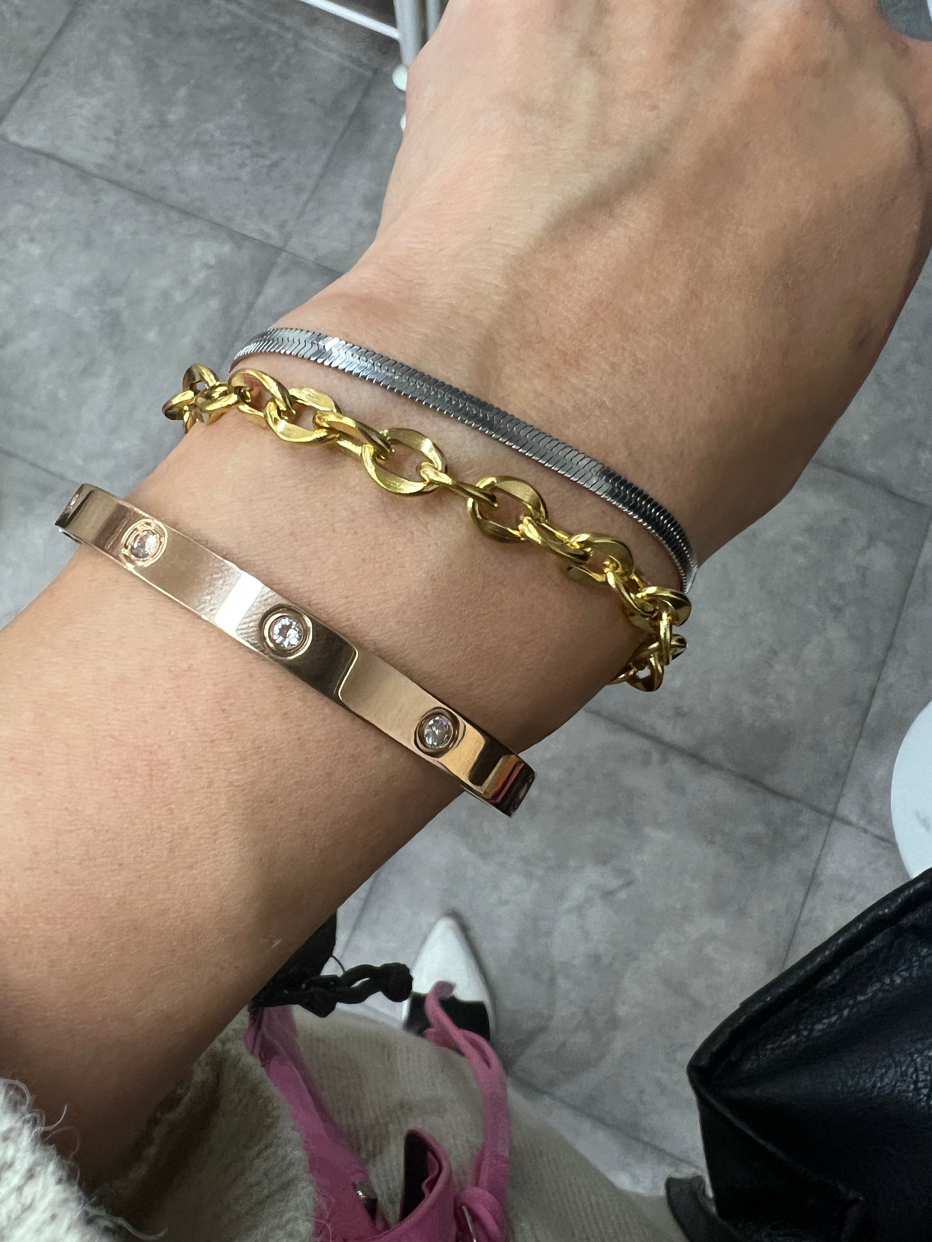 ピンクゴールドストーンバングル