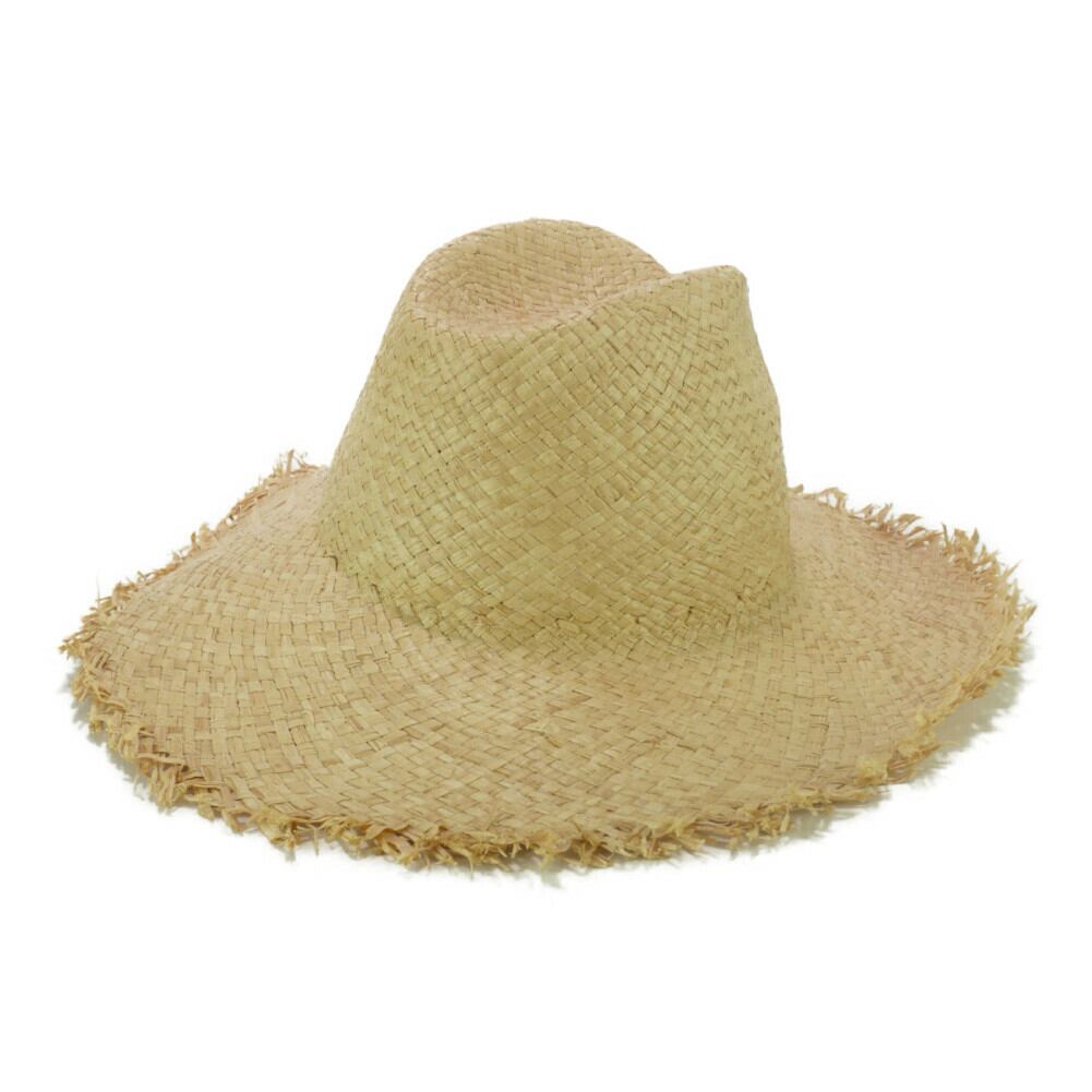 ラフィア変形フリンジロングブリムハット