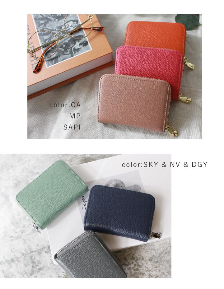 スキミング防止機能付き本革ミニ財布。コンパクトでありながら、大容量でカードもたくさん入ります。