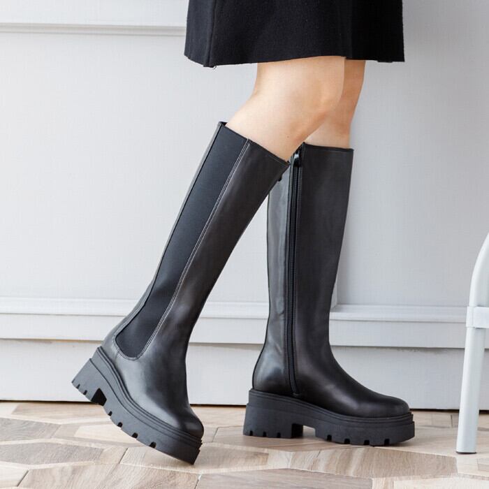 ブーツ ロングブーツ サイドゴア サイドゴアロングブーツ 厚底 ボリュームソール スタイルアップ 2023秋冬新作
