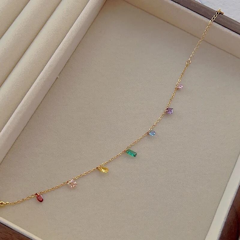 ステンレス製カラフルストーンネックレス