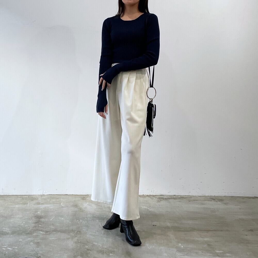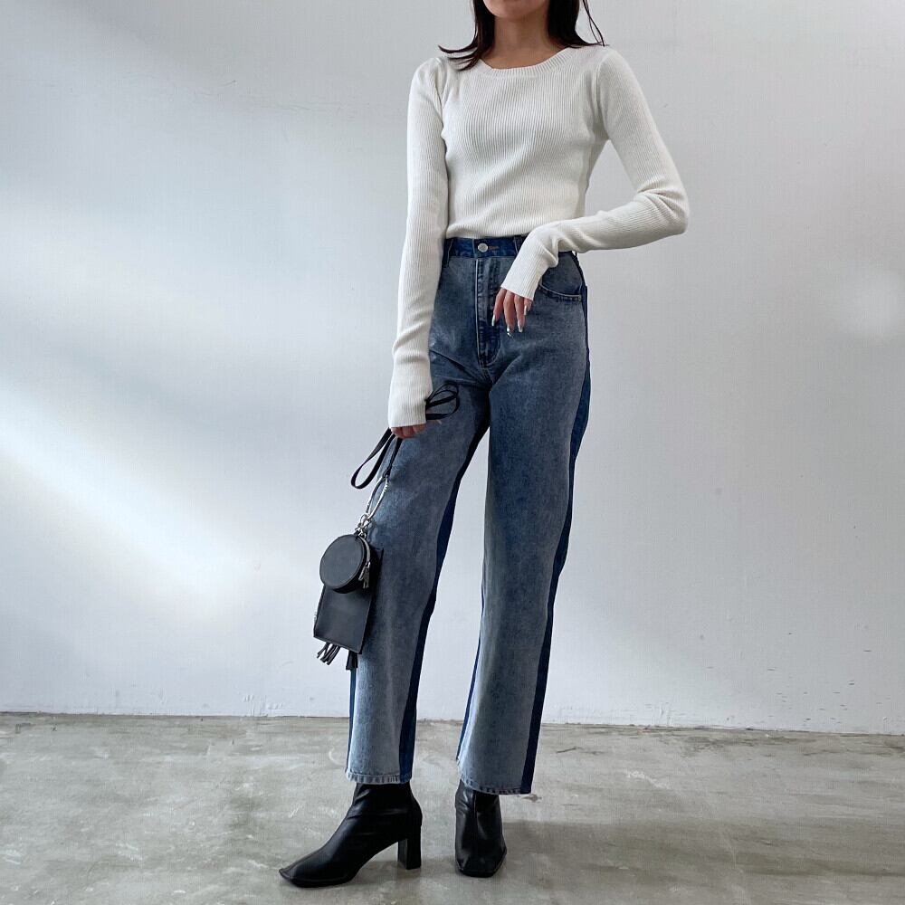 ホワイトブラックラスト1激伸びレイヤードリブクルーネックプルオーバー