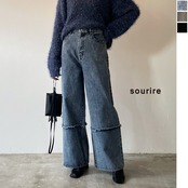 裾切替ワイドデニムパンツ