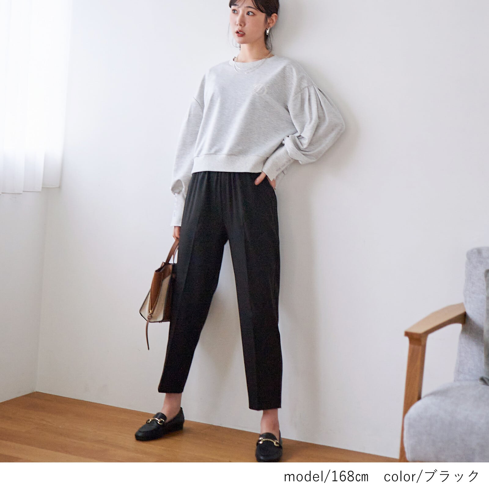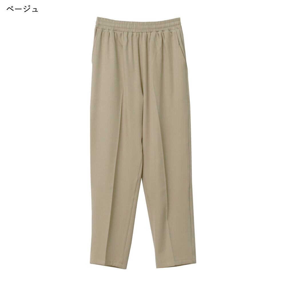すっきりと脚を綺麗に見せるセンタープレスデザイン&テーパードシルエットで、エレガントな雰囲気を演出。