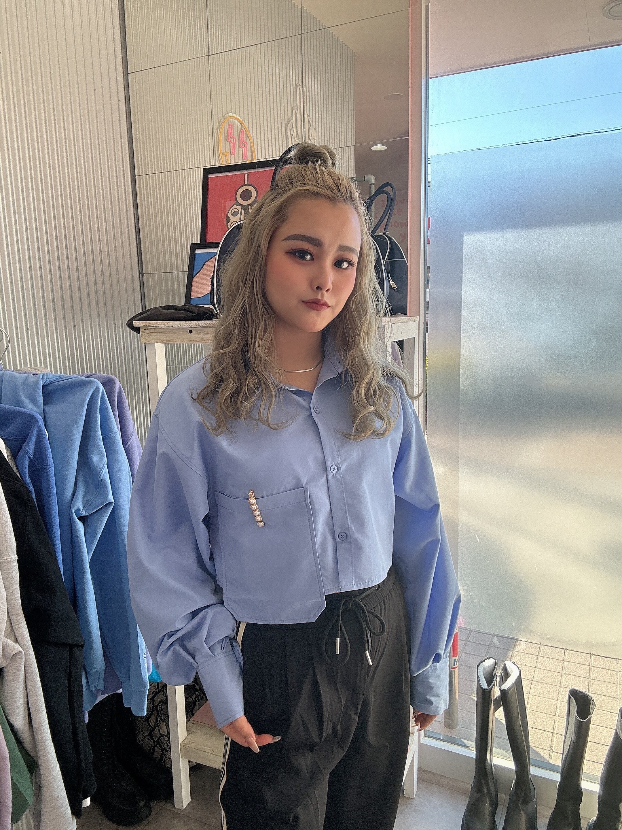 春先まで着られるショート丈のブロードシャツデザインポケットが目を惹く1枚◎