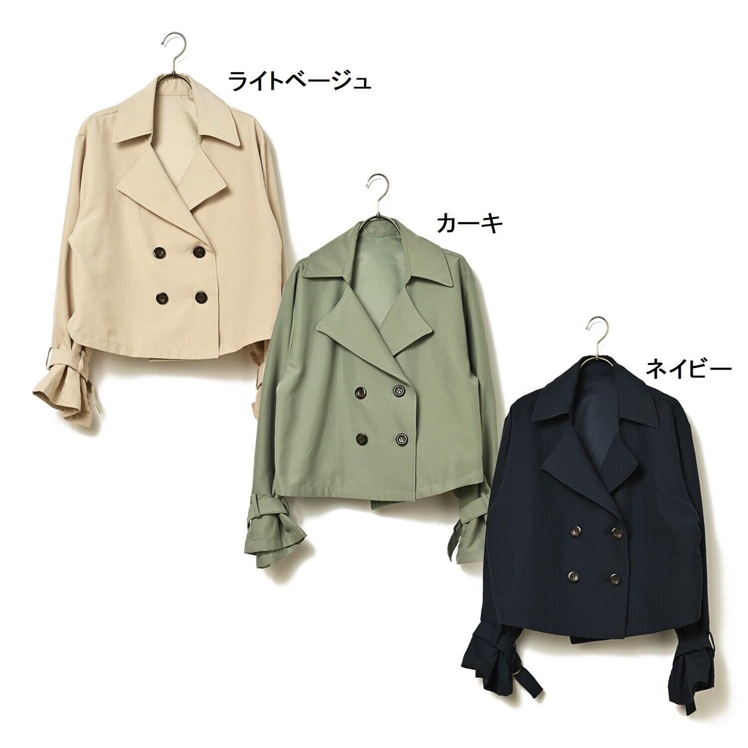 ポリエステルツイル素材を使用した、ボリュームスリーブのショートトレンチです。