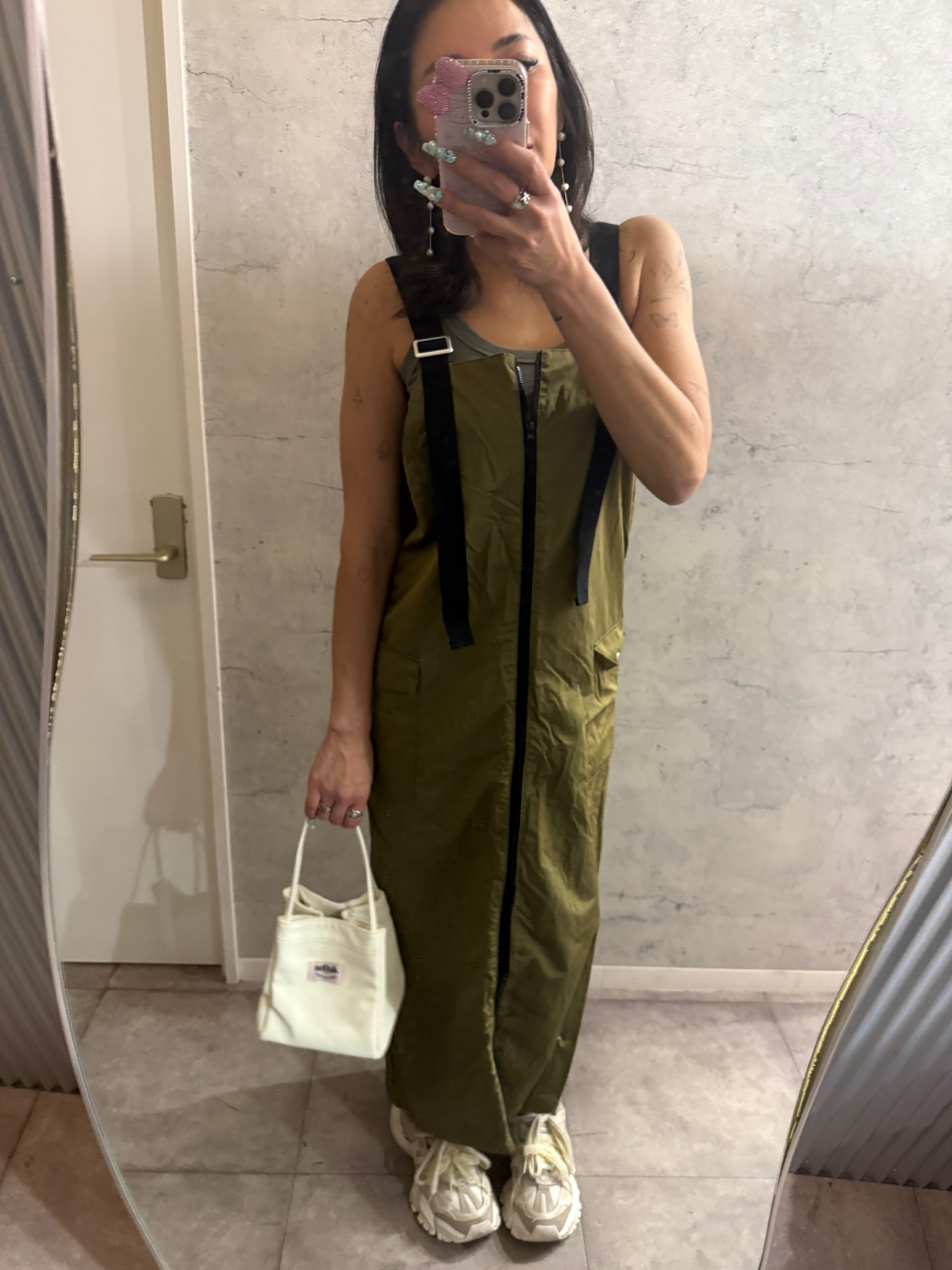 ※T/Nタフタ フロントジップ ジャンパースカート☆肩ひもテープ調節可能です!肩ひもテープとファスナーカラーは全色共通でブラックを使用しています!