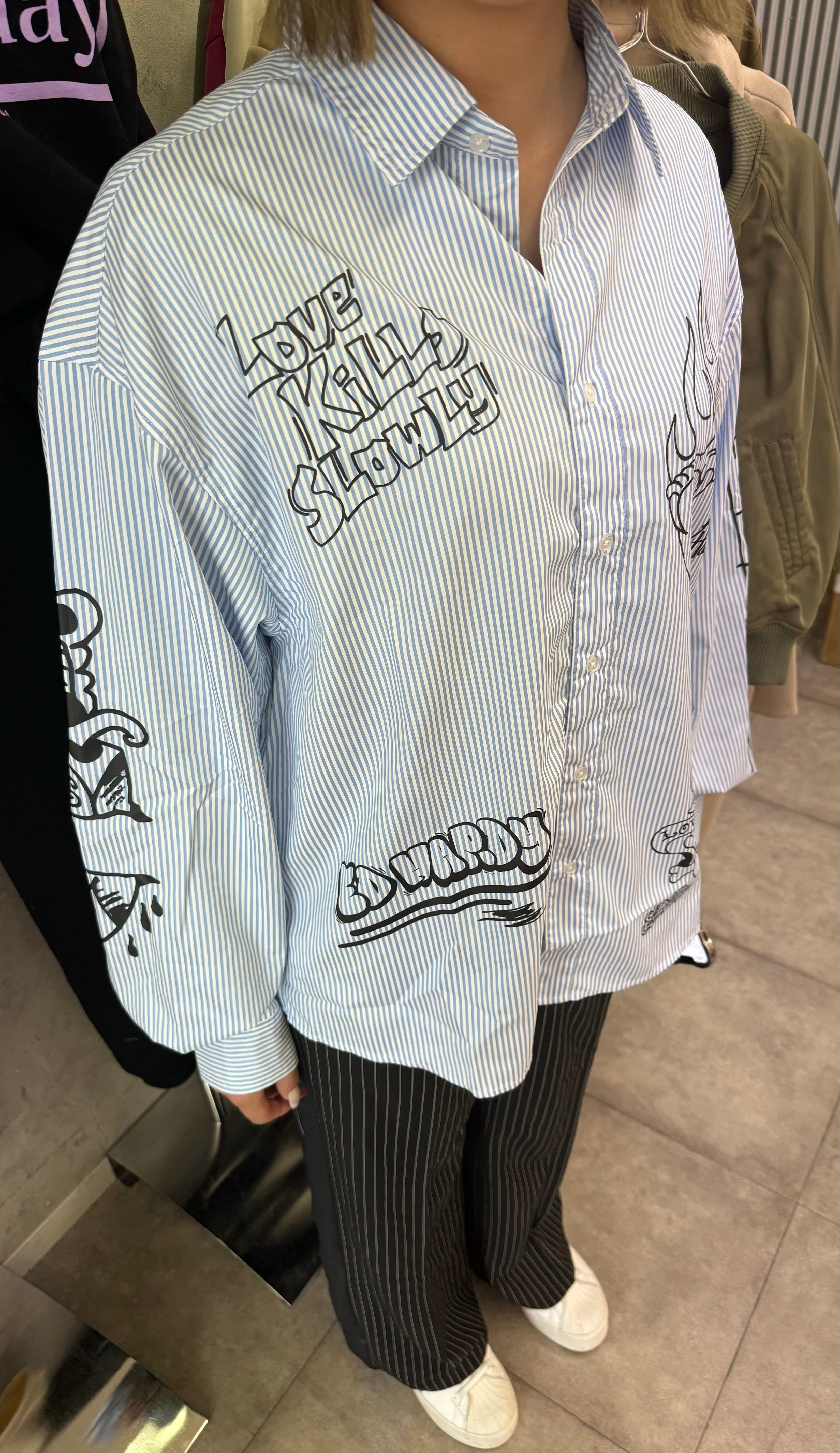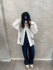 Y2Kデザインであるような 総柄のオーバーシャツ