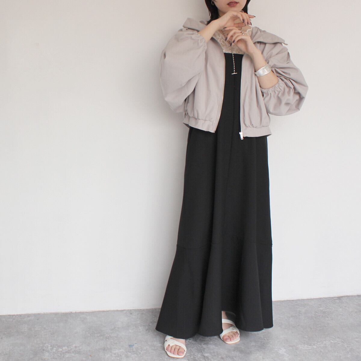 ボリュームスリーブが特徴的なマーメイドフレアのロングワンピースが新登場!スクエアネックで首元すっきり、インナー合わせでコーディネートも楽しめちゃいます♪