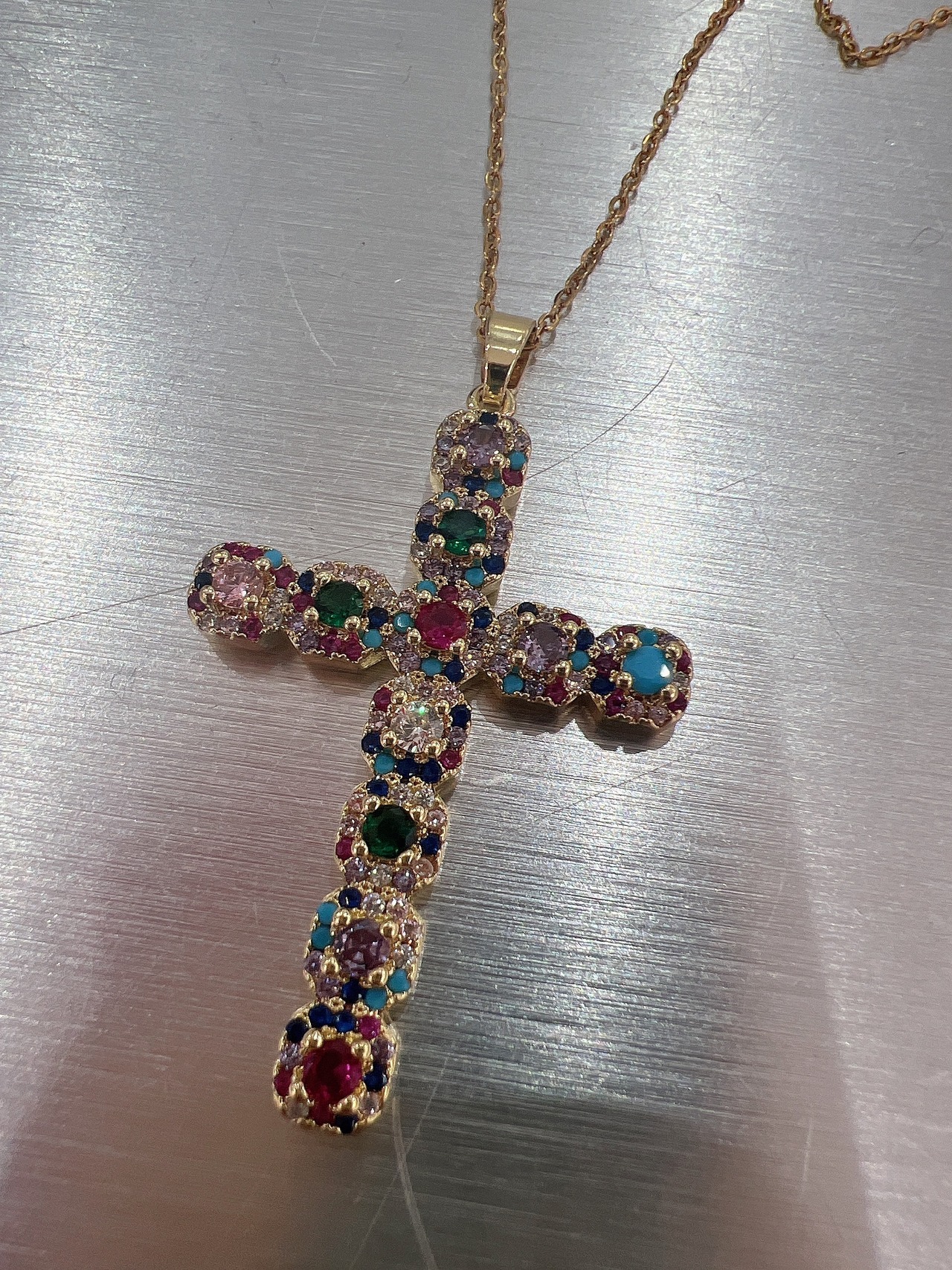 ラスト2ステンレスラインストーンクロスネックレス