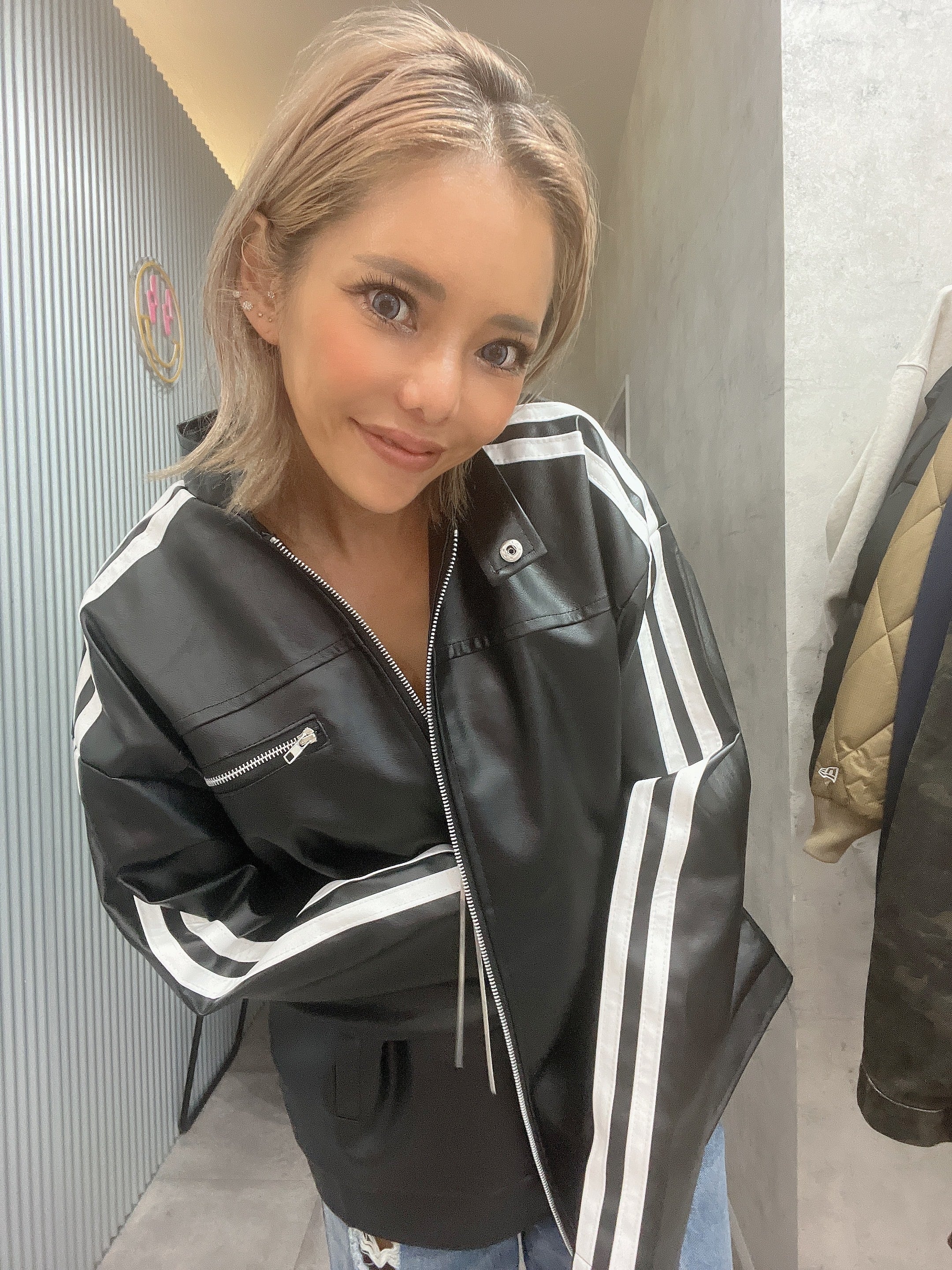 unisexラインライダースジャケット