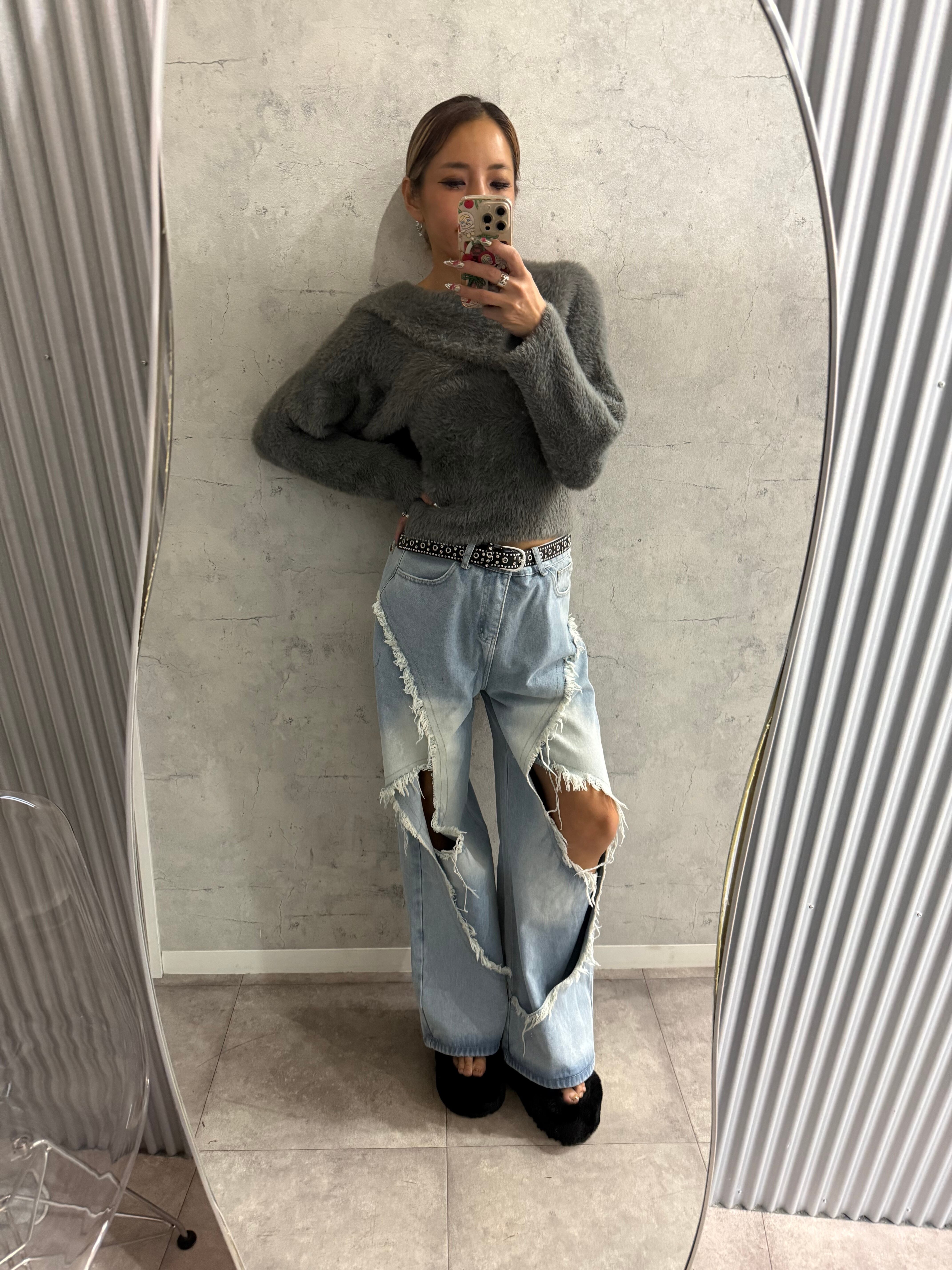 4500→3500シャギークロスインナー付きニットアンサンブル
