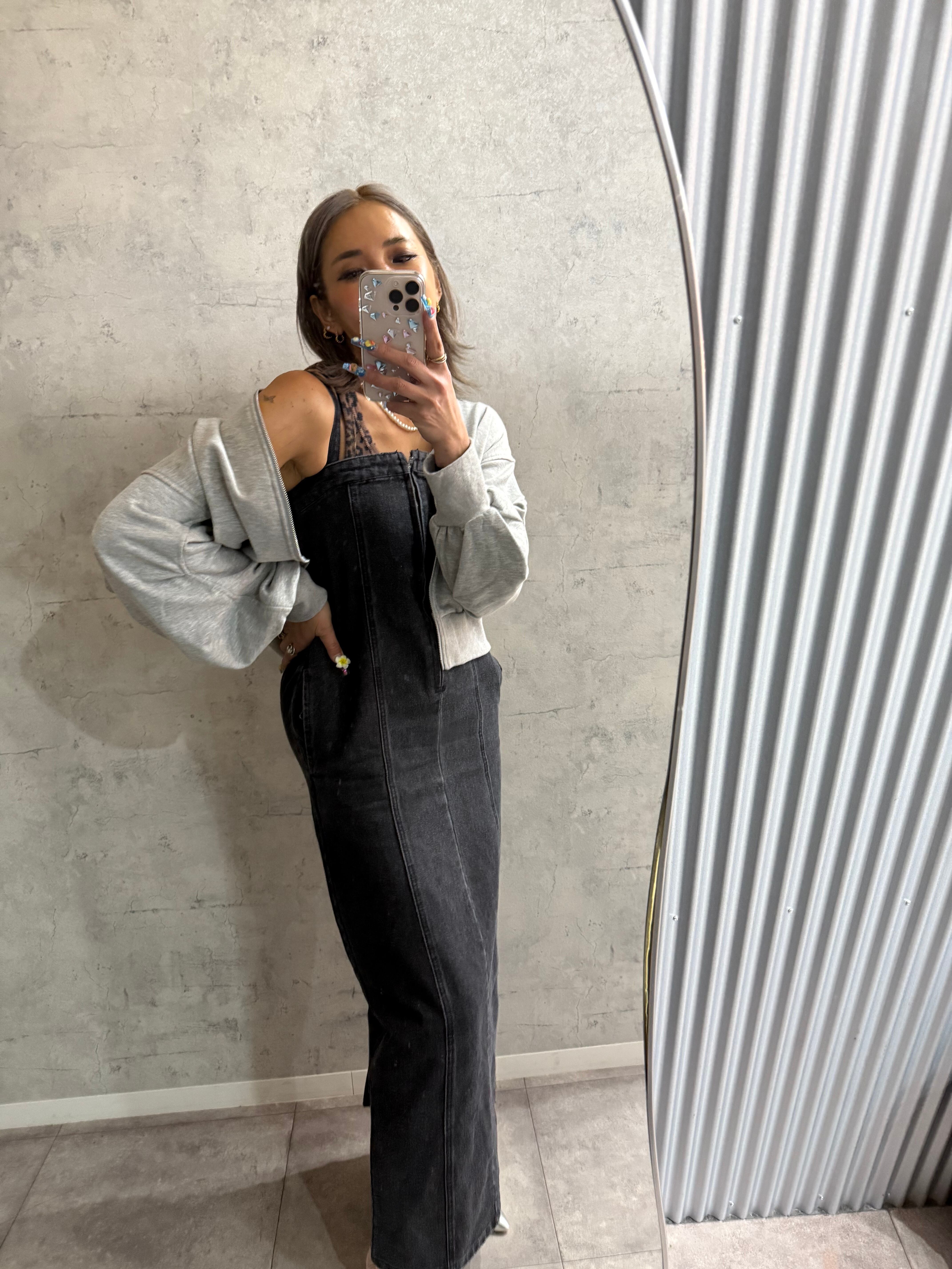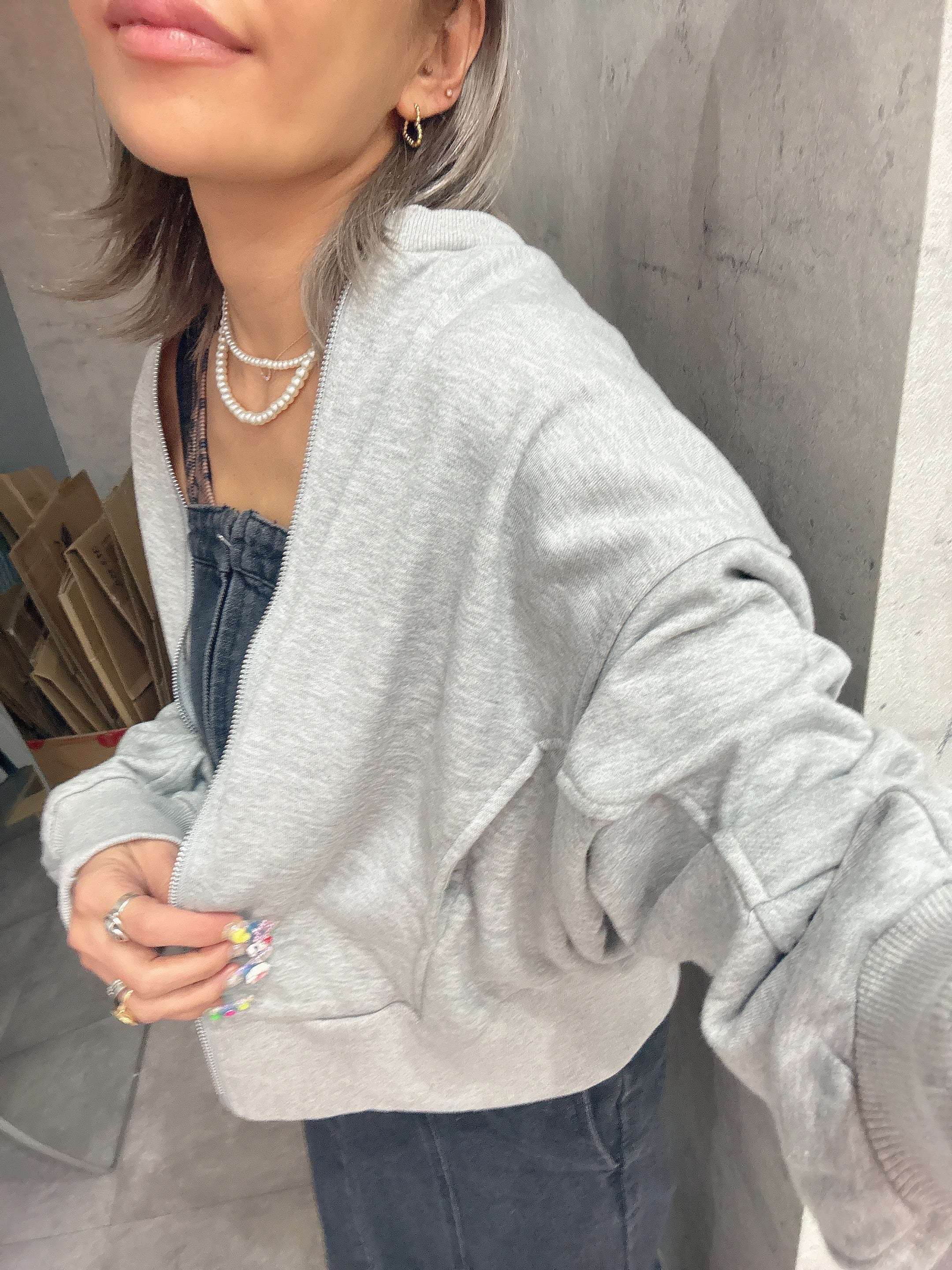 グレーラスト1裏毛スウェットダブルジップショートカーディガン