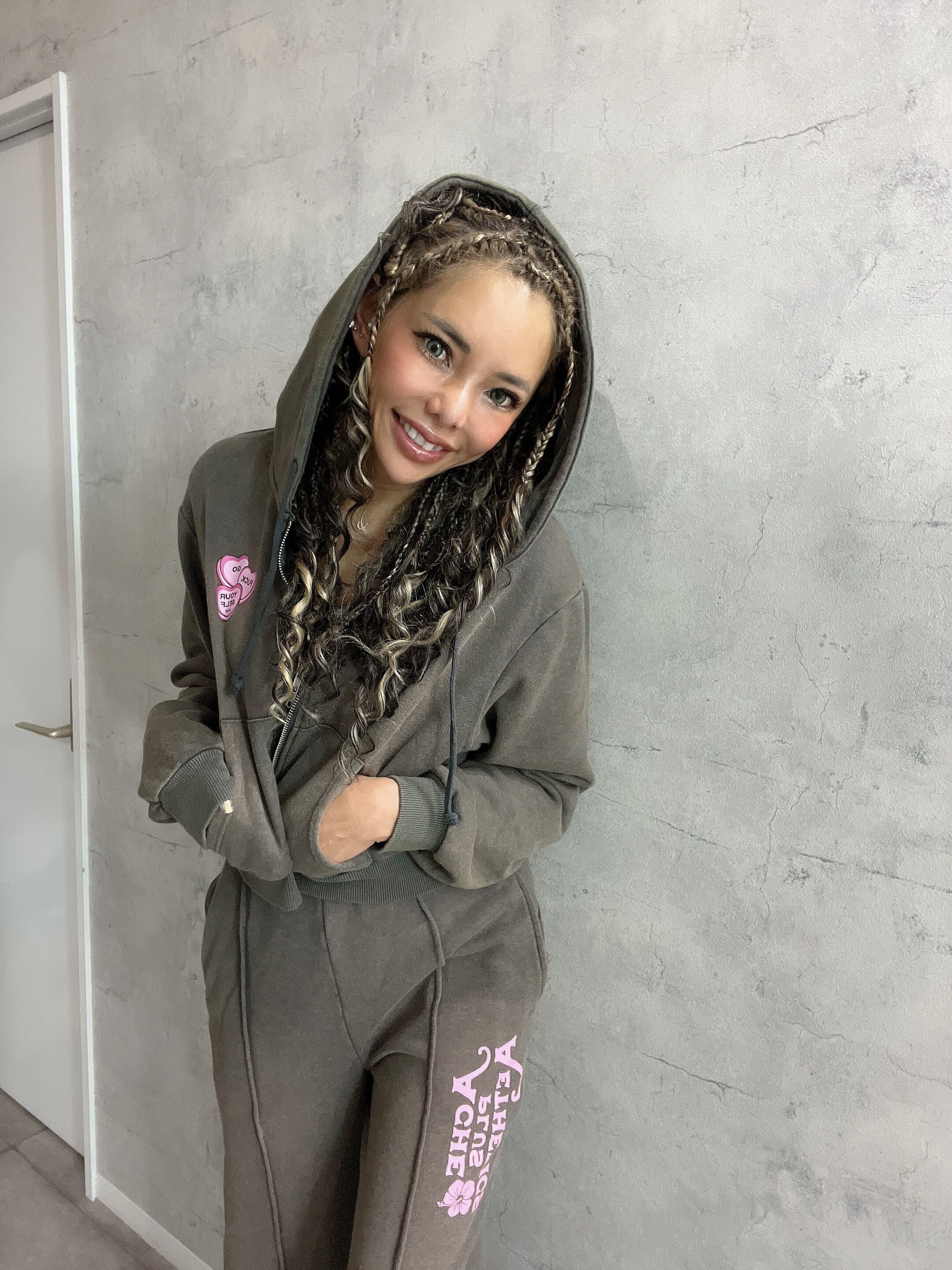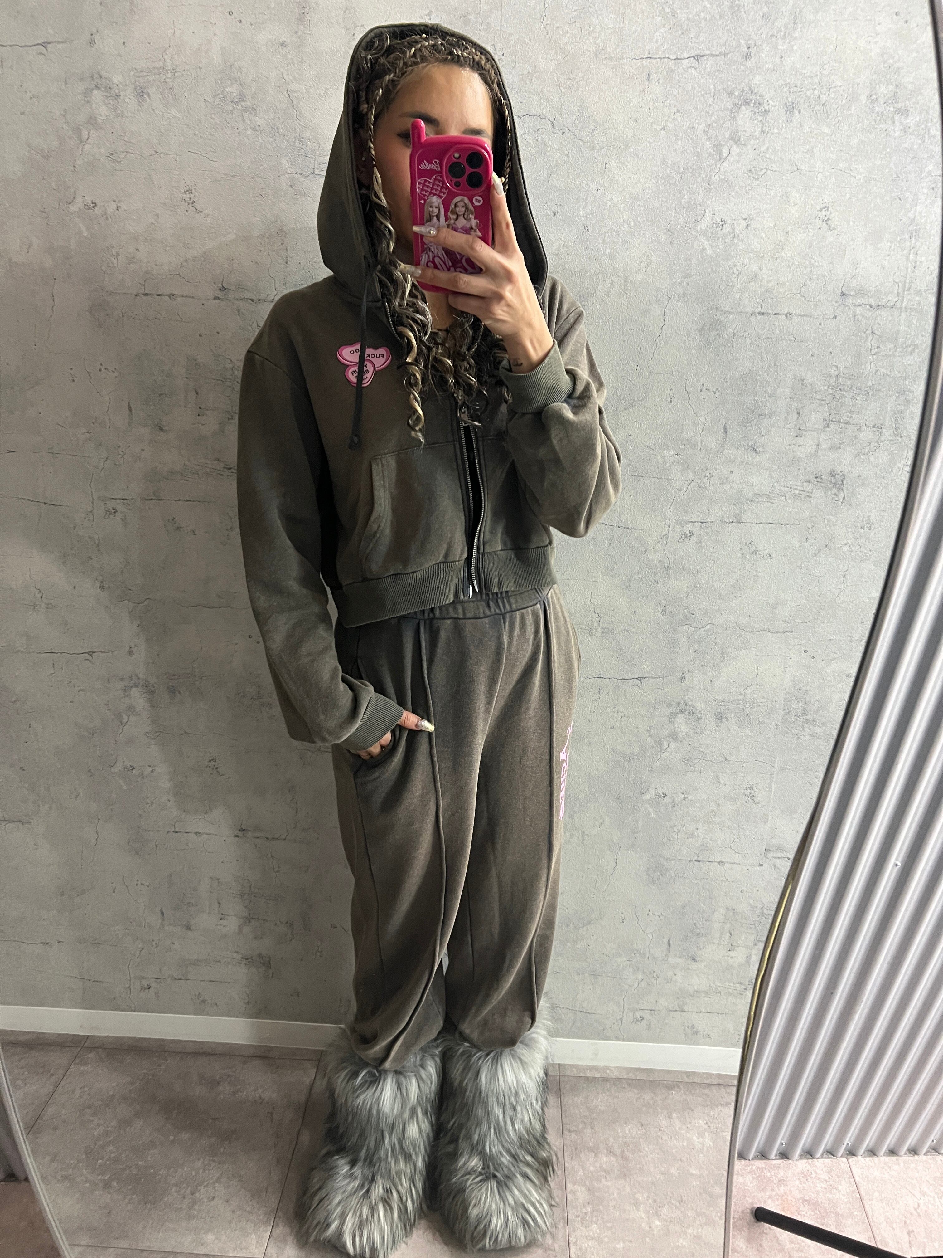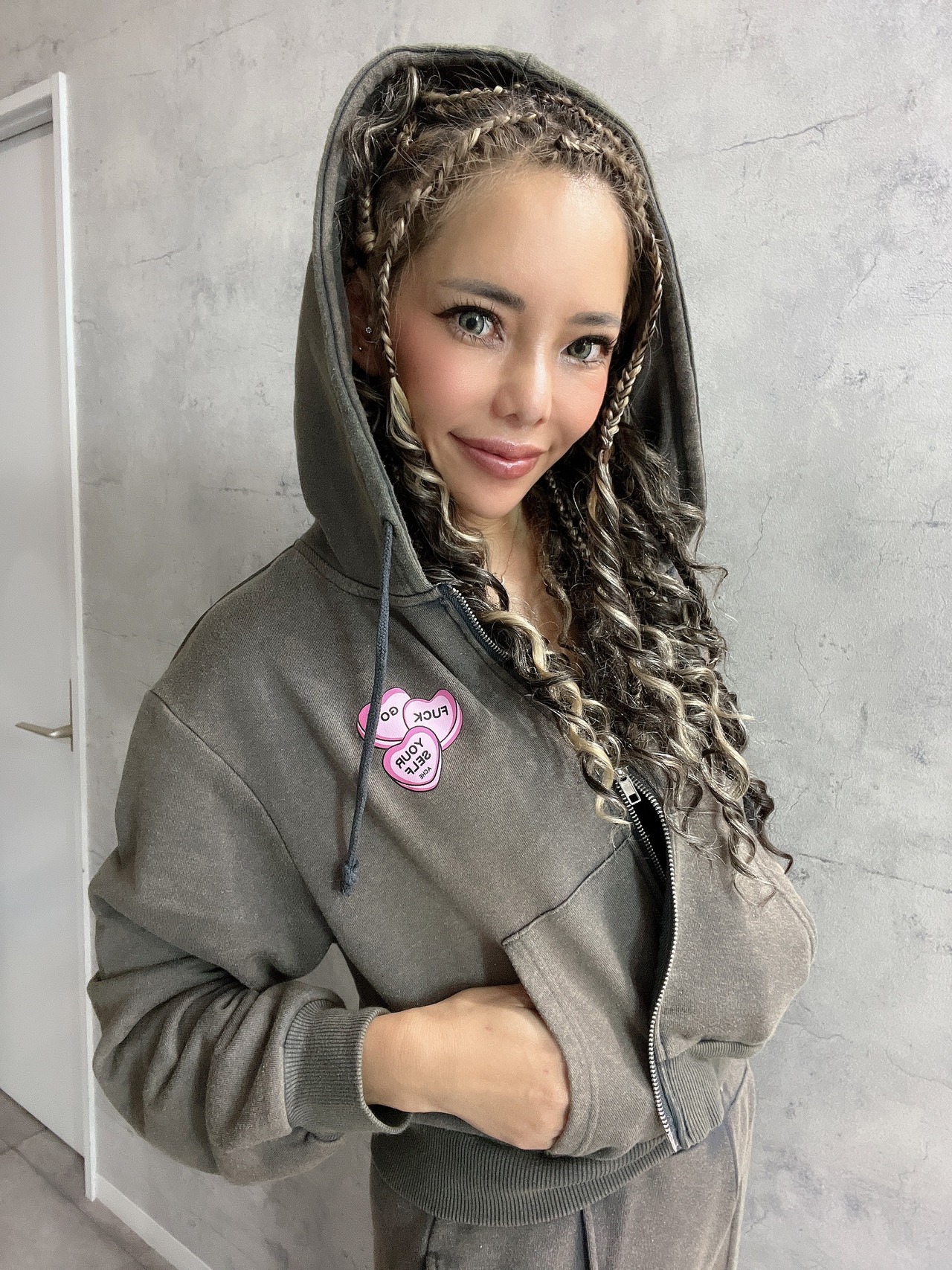 【パウダー&モンキー加工がポイントのショートジップパーカー】