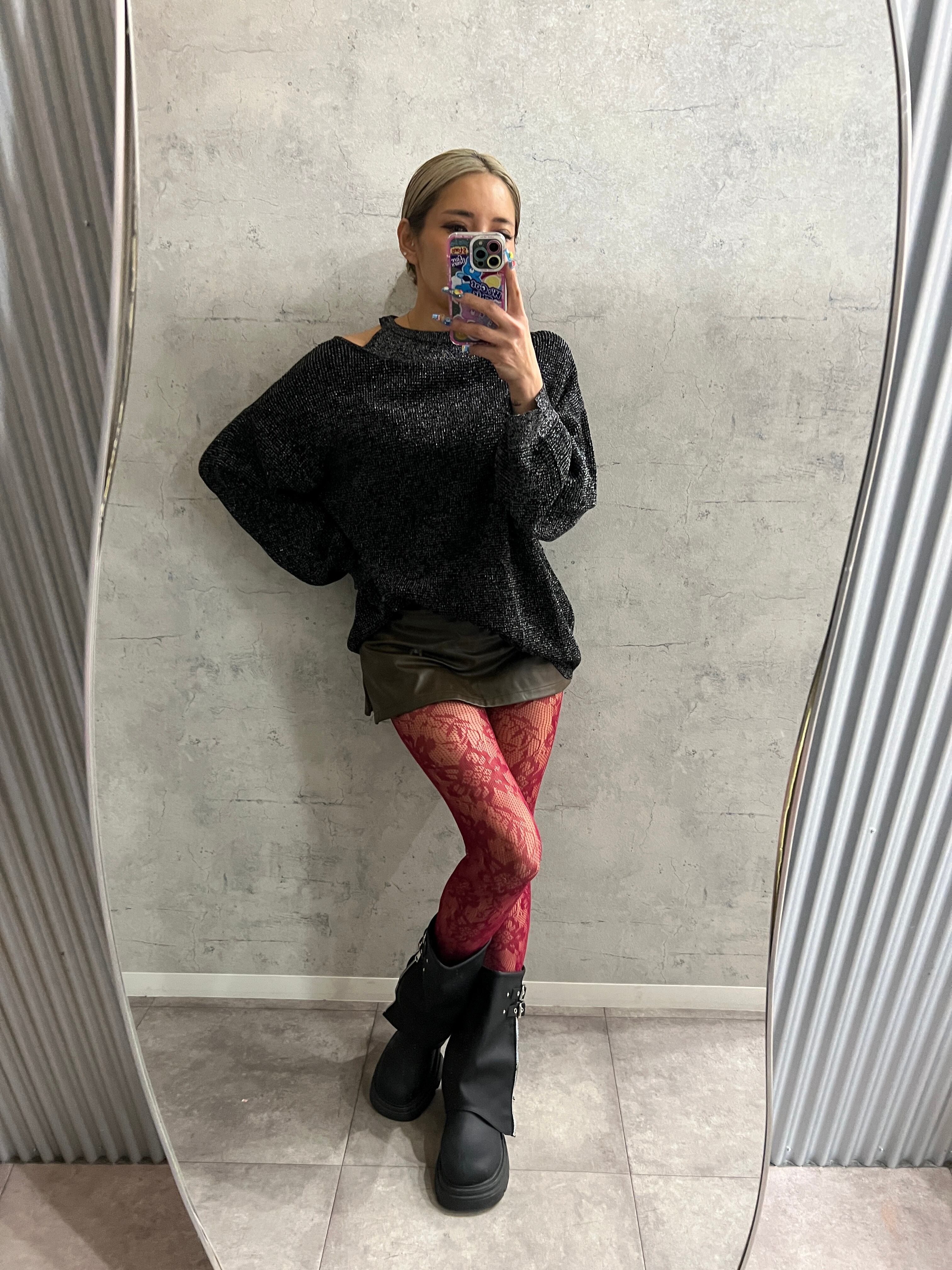 【design point】 ・春らしいさらっとしたラメニット素材・ラメが引きそろえられていて上品な印象に*・ベースはワッフル編みで立体感のある編地に※ハンガーにつるして保管するとタンク部分が伸びてしまう可能性があります。たたんだ状態での保管&洗濯をお願いします