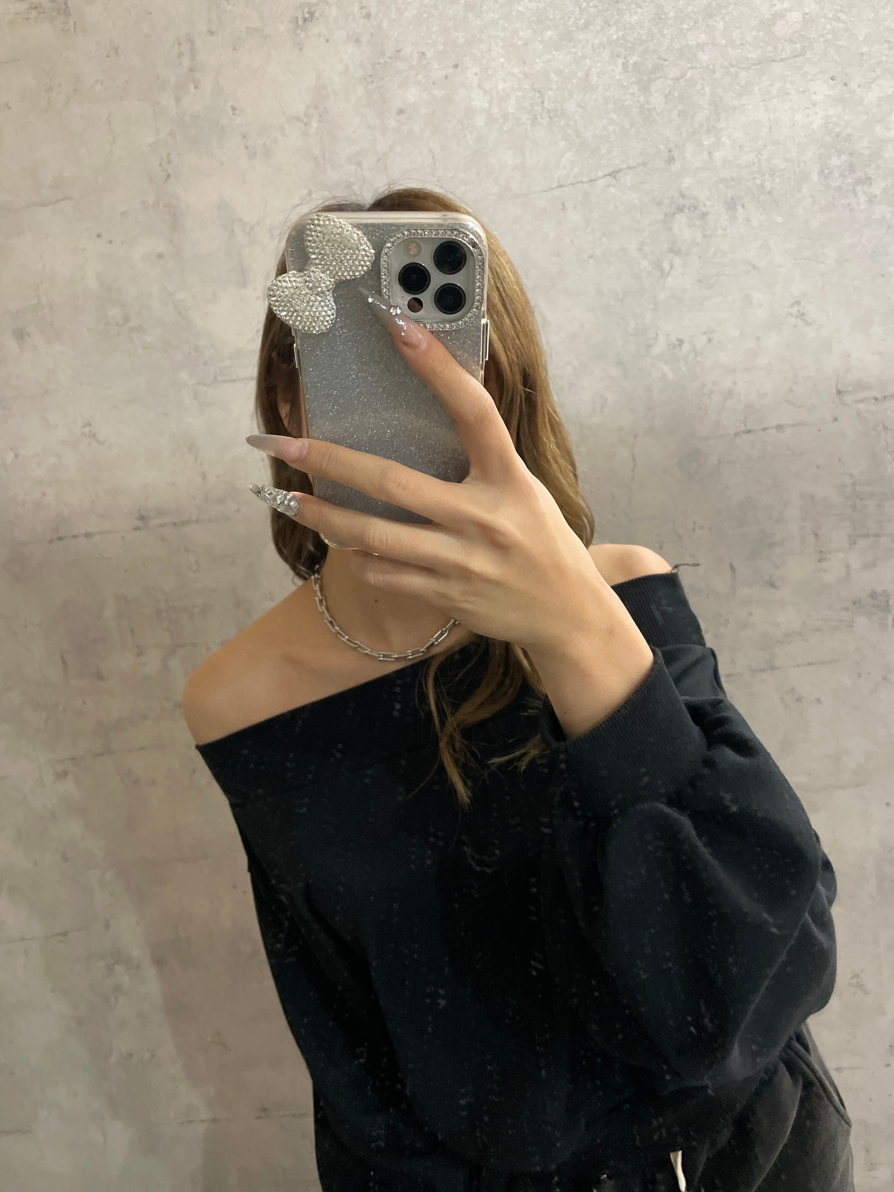 裏毛素材のオフショルプルオーバーが