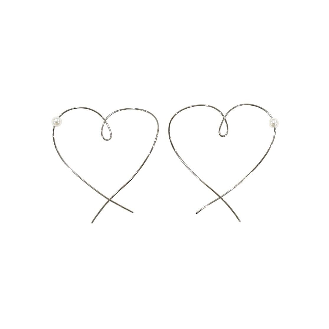 ハートにパールがポイントのフープです。パールと大ぶりデザインのおかげで幅広い年齢層に合います。ワンポイントのパールはデザイン性だけでなくキャッチの役目も果たす優れものです。